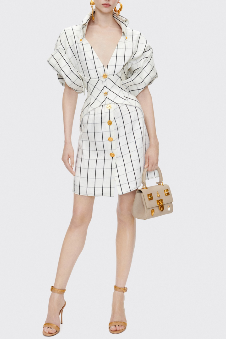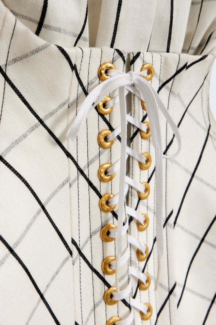 Elevate your style with the Abraha Corset Mini Shirtdress, a refined blend of classic shirtdress structure and modern corset detailing. This piece contours the waist for a flattering silhouette while offering a chic, tailored look. Its mini length adds a youthful edge, making it perfect for sophisticated day-to-night occasions. Crafted to balance elegance and contemporary fashion, it’s an essential addition for a polished and confident wardrobe.