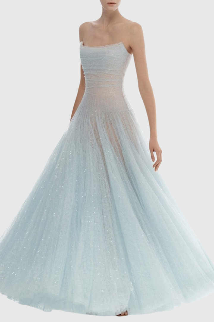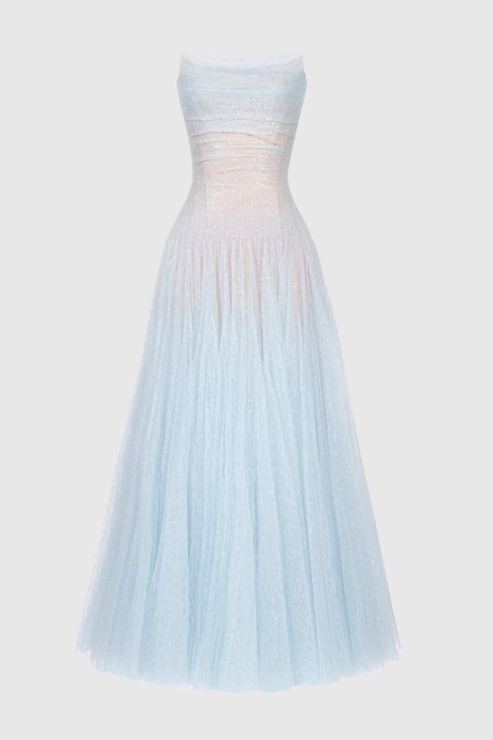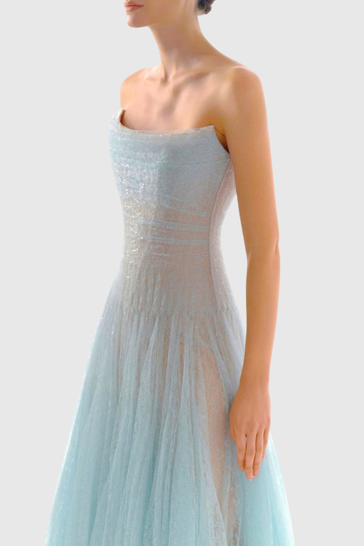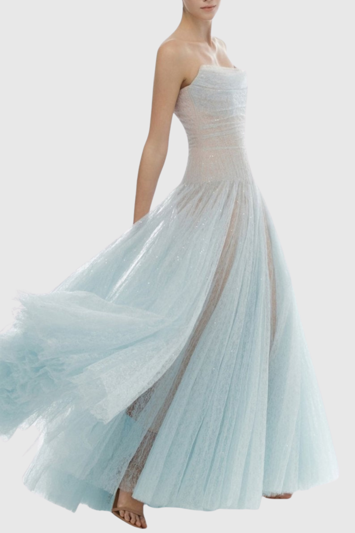 Elevate your evening wardrobe with this stunning strapless corset midi dress. Crafted with delicate lace detailing, the structured corset bodice creates a flattering silhouette while the flowing midi length offers timeless elegance. Perfect for cocktail events, formal dinners, or special occasions, this piece seamlessly transitions from day to night. The strapless design showcases the shoulders for a refined, contemporary look that commands attention.