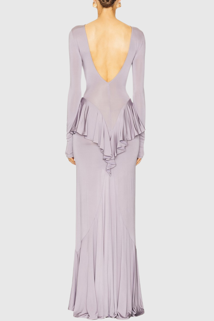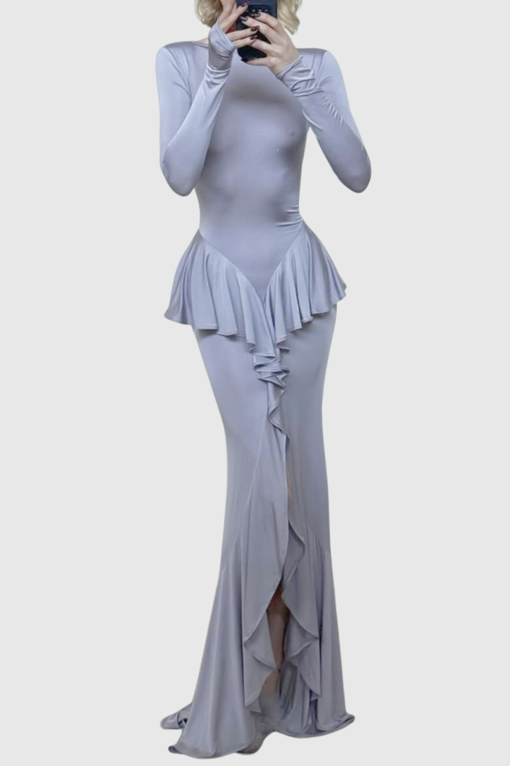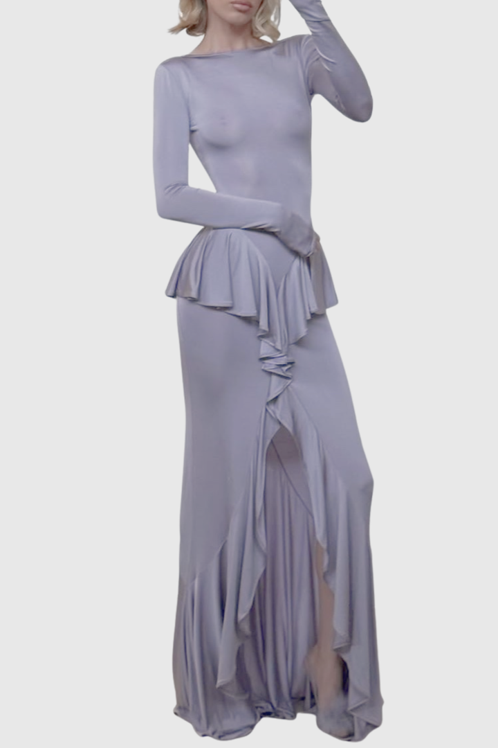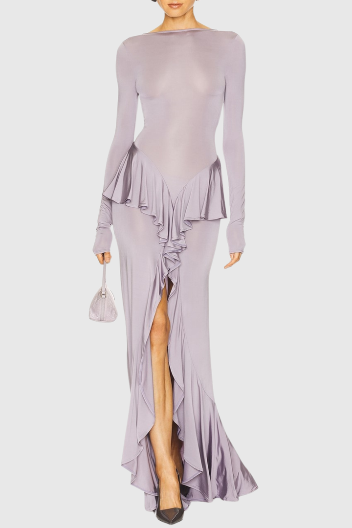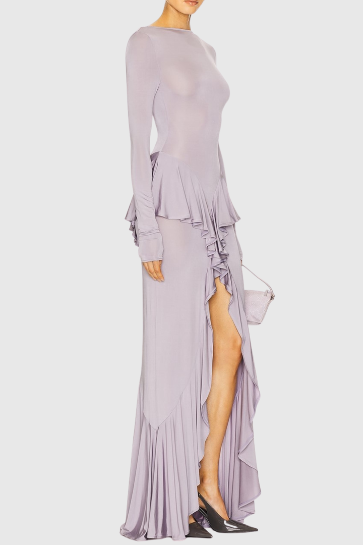 Adhara Ruffle Split Maxi Dress - Purple