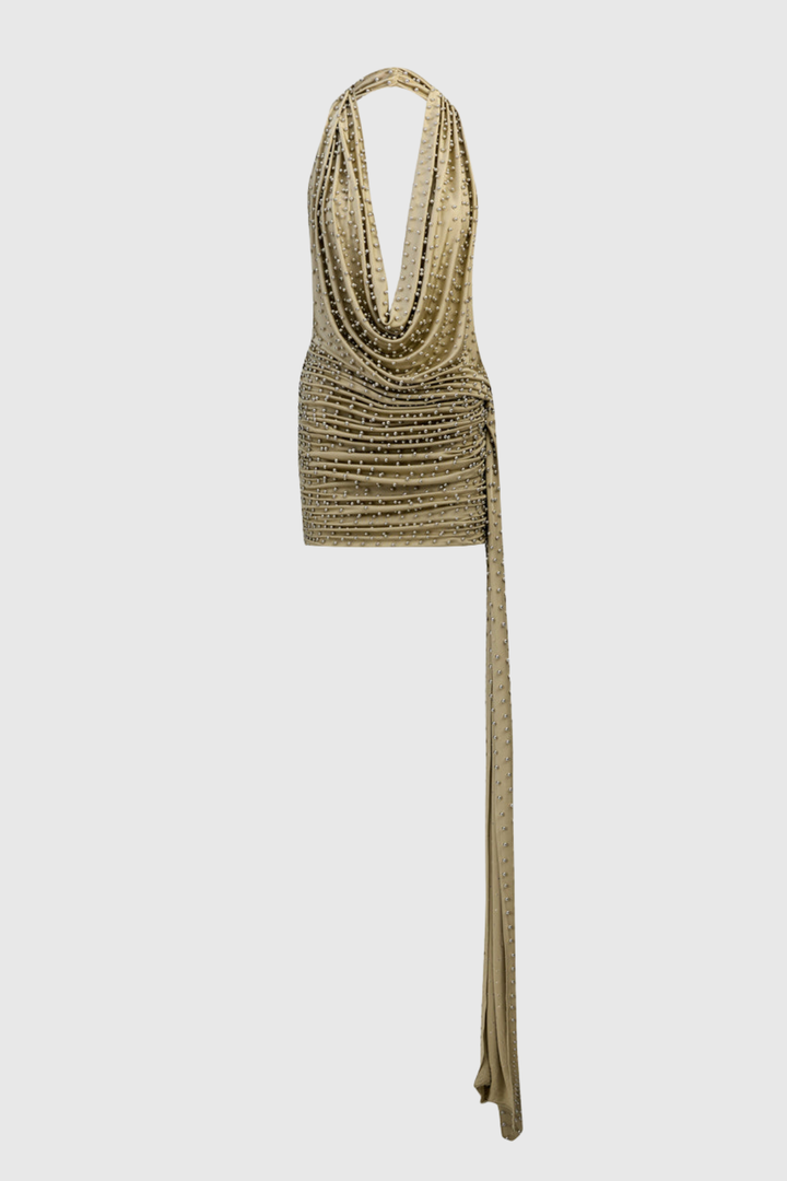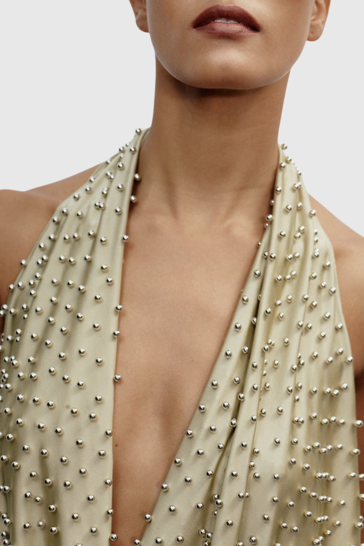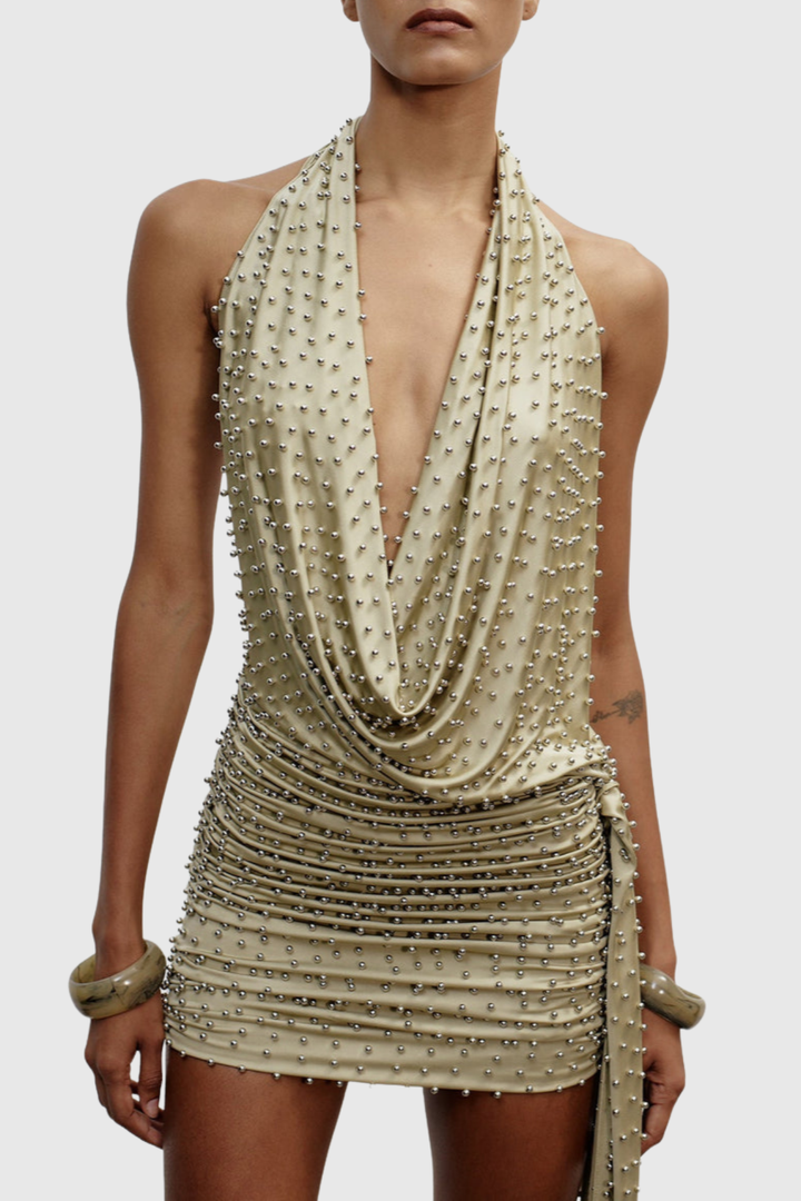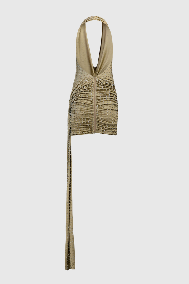 Adlai Stud Embellished Halter Mini Dress - Beige