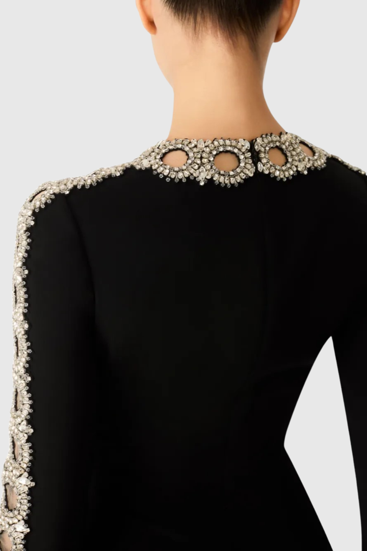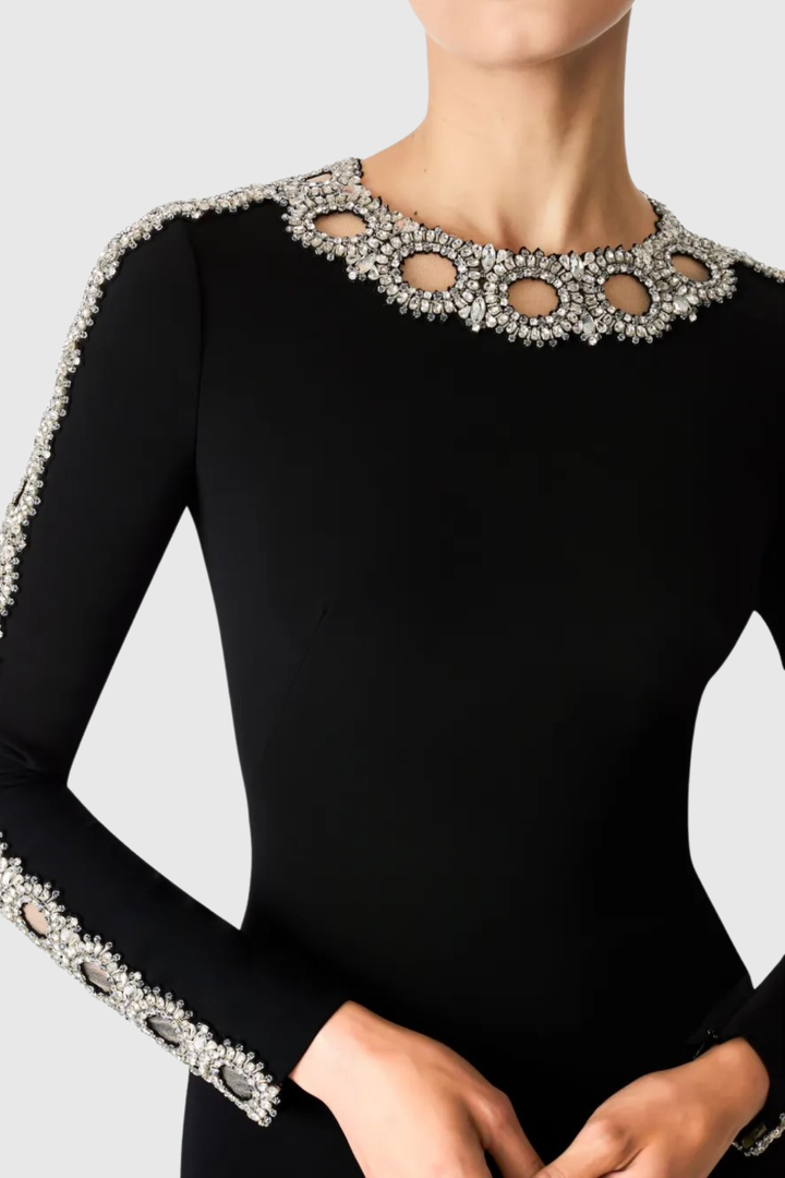 Elevate your evening wardrobe with the Adonis Crystal Embellished Maxi Dress, a stunning statement piece that captures light and attention in equal measure. Intricate crystal embellishments cascade across the silhouette, creating an enchanting shimmer with every movement. The flowing maxi length offers timeless elegance and graceful drape, making it ideal for galas, weddings, and formal celebrations. Crafted for the discerning woman who appreciates refined luxury, this dress combines sophisticated design with impeccable craftsmanship. Perfect for those moments when you want to shine with understated glamour.