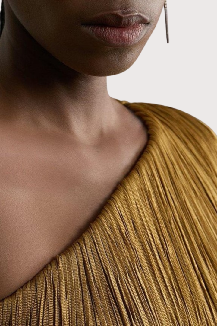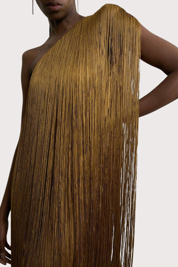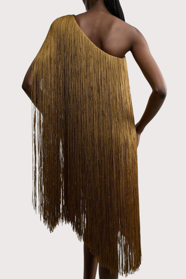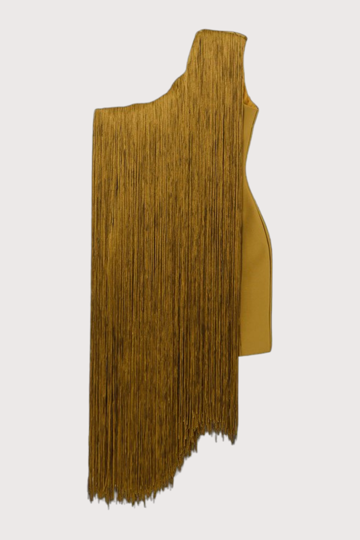 Aimee Bandage One Shoulder Fringe Mini Knit Dress - Gold