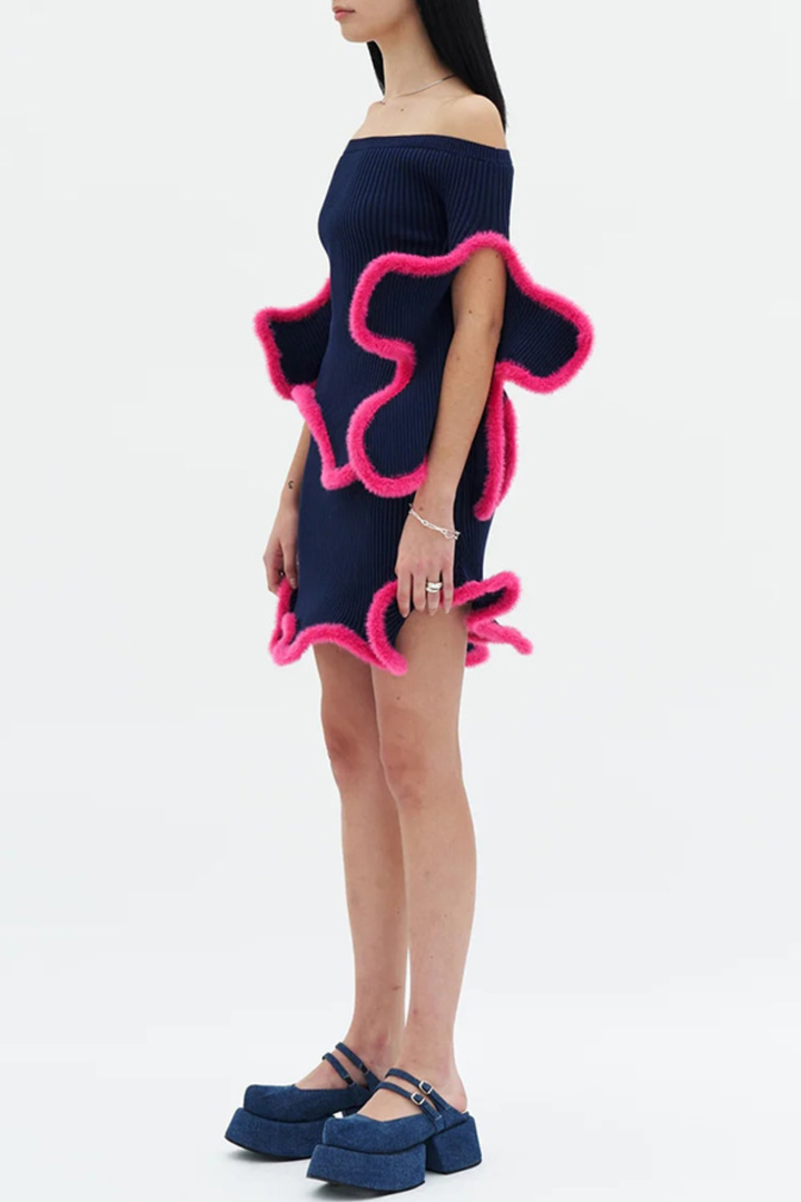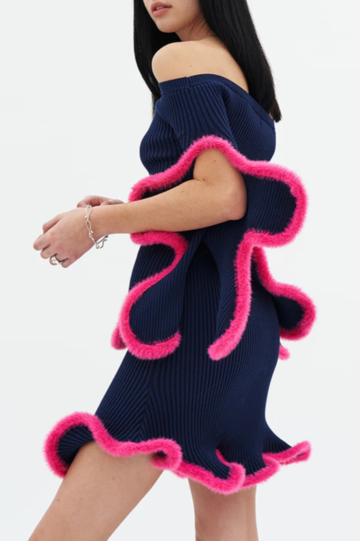 Alessia Off Shoulder Wavy Knit Top & Skirt Set