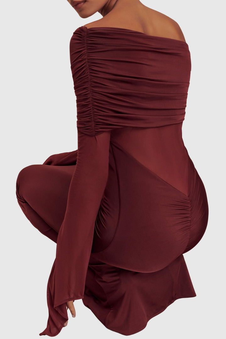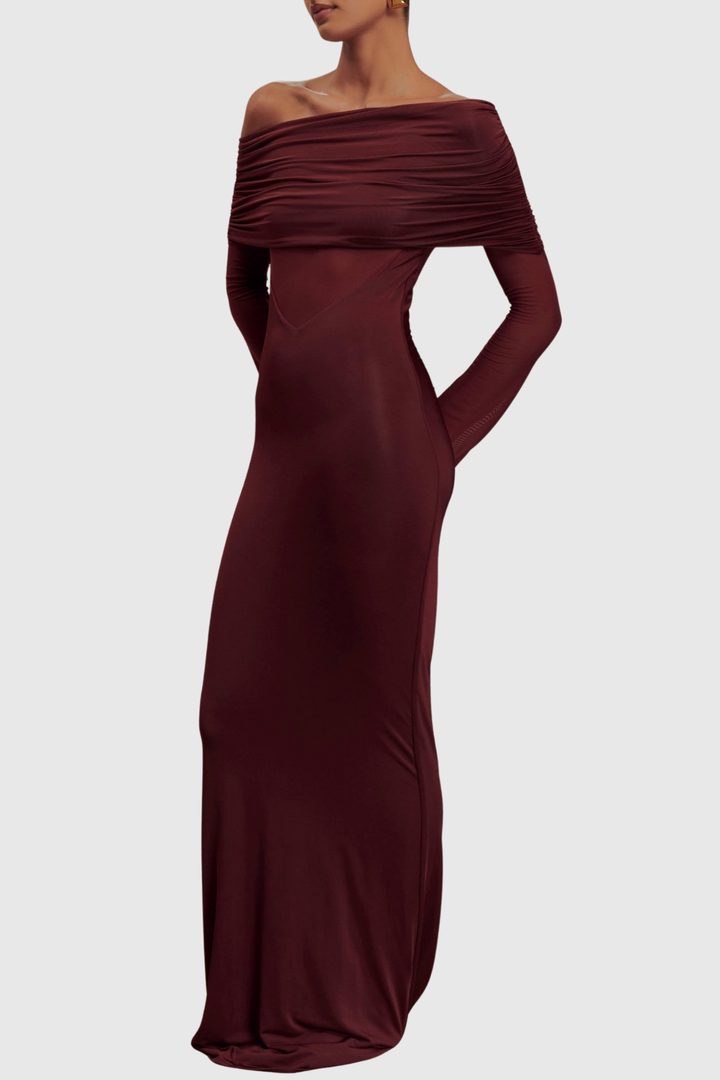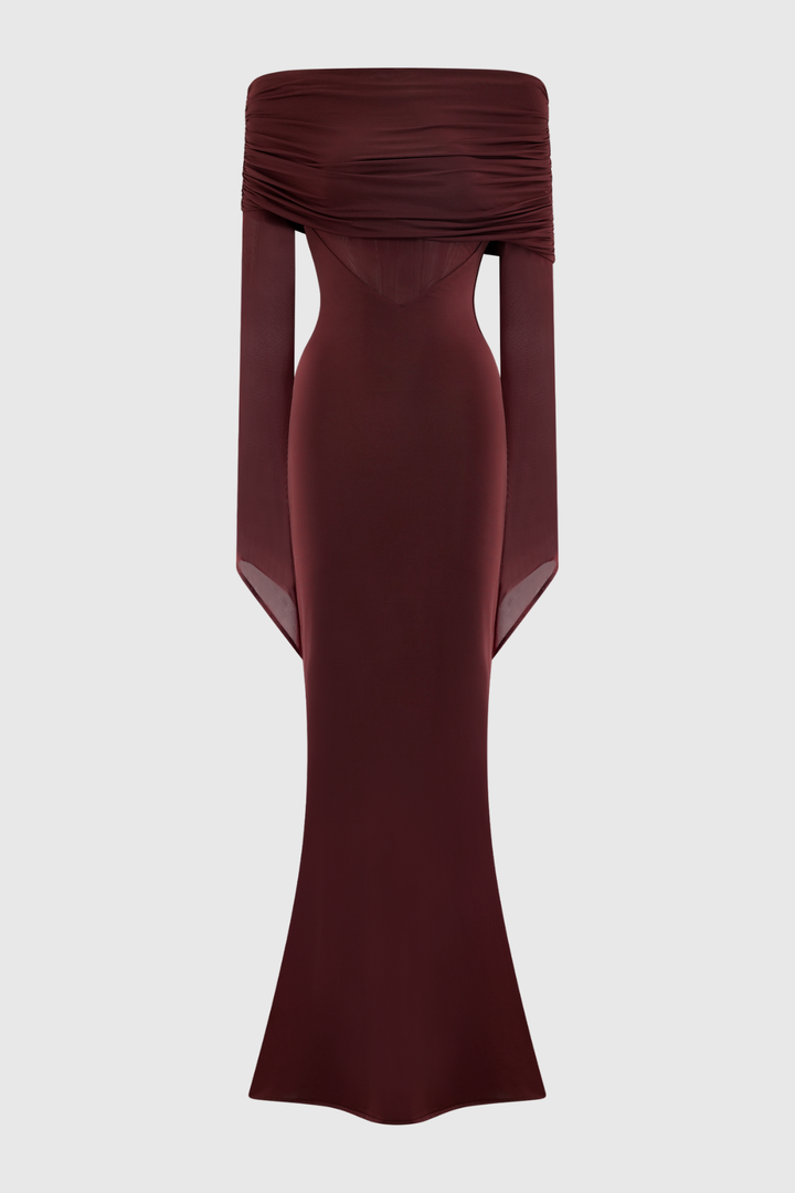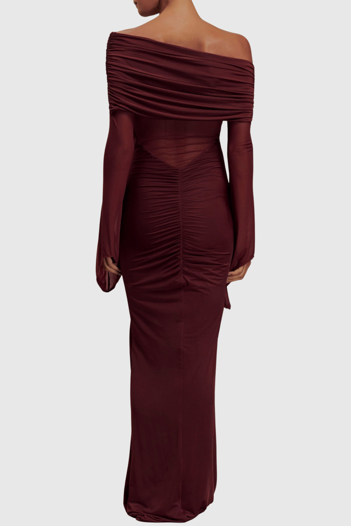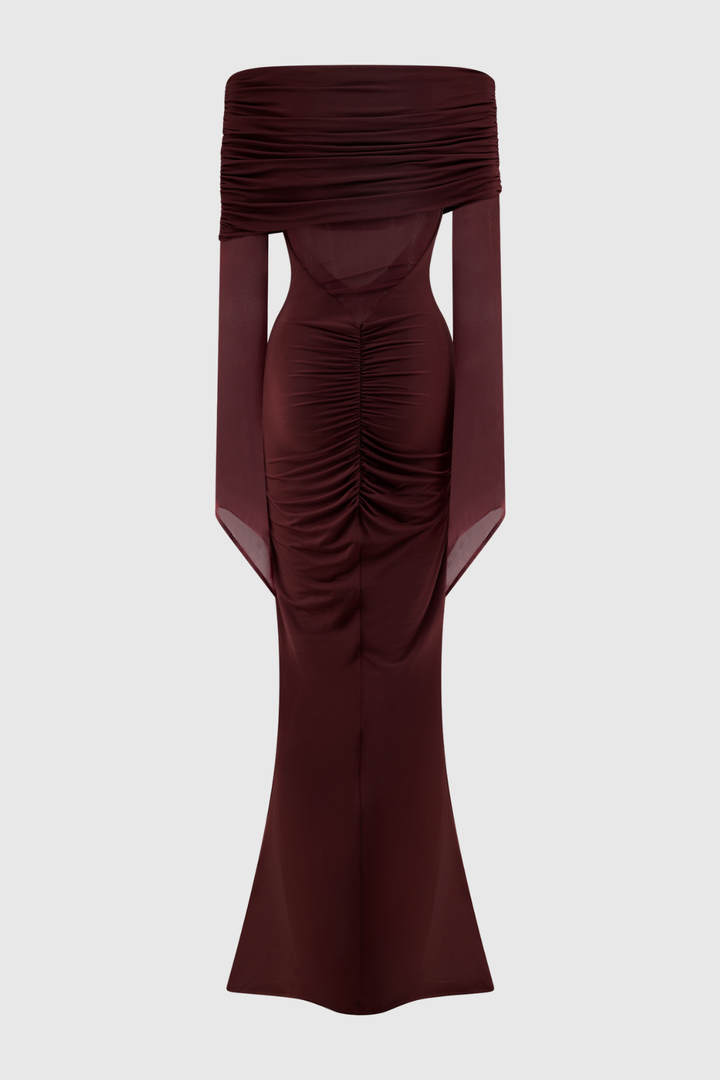 Aletris Off Shoulder Mesh Maxi Dress - Brown