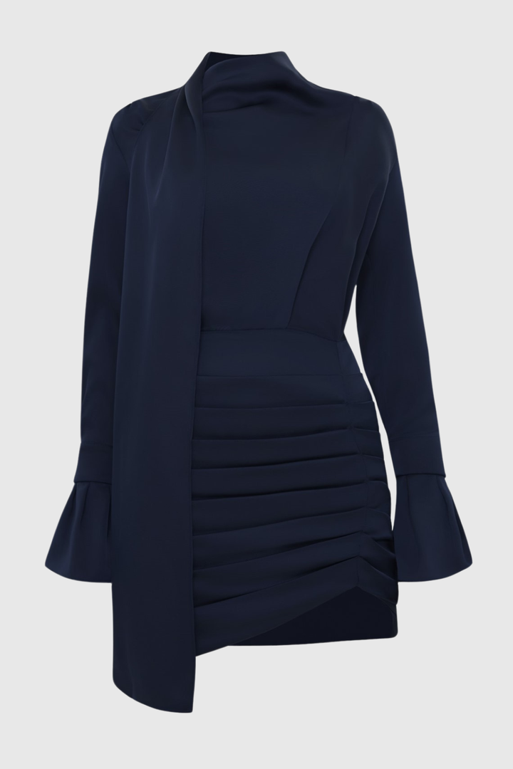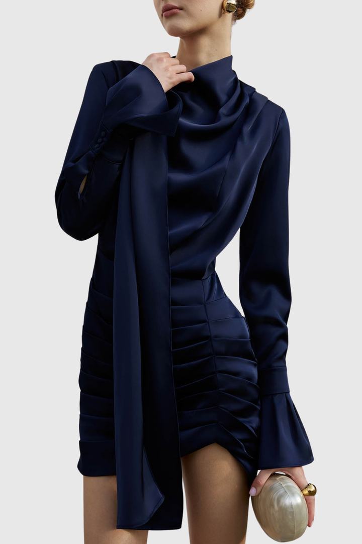 Alvin Satin Scarf Ruched Mini Dress
