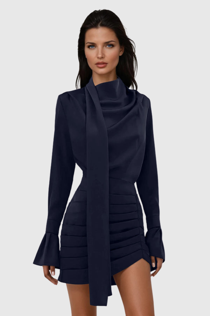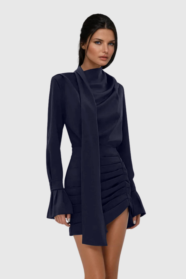 Elevate your evening wardrobe with the Alvin Satin Scarf Ruched Mini Dress, a refined piece that seamlessly blends elegance with contemporary style. Crafted from luxurious satin, this dress features artfully ruched detailing that creates a flattering silhouette while the signature scarf accent adds a touch of understated sophistication. Perfect for cocktail events, date nights, or upscale gatherings, this mini dress delivers timeless glamour with modern sensibility. The fluid fabric drapes beautifully, ensuring you look polished and put-together from entrance to exit.
