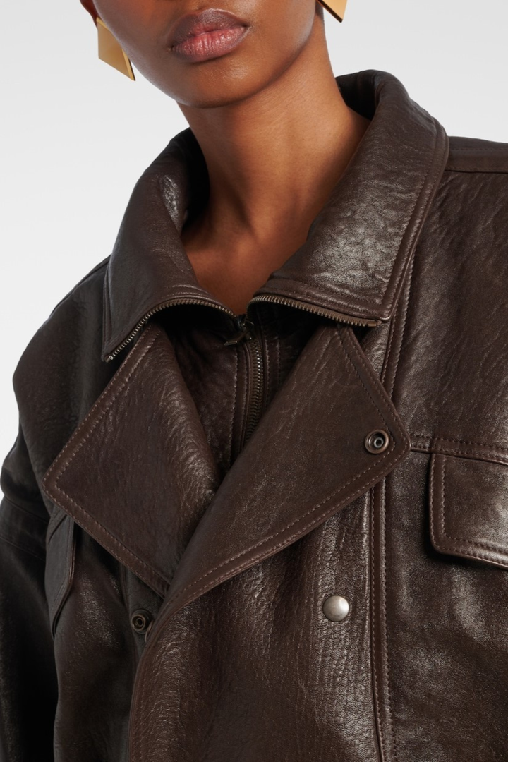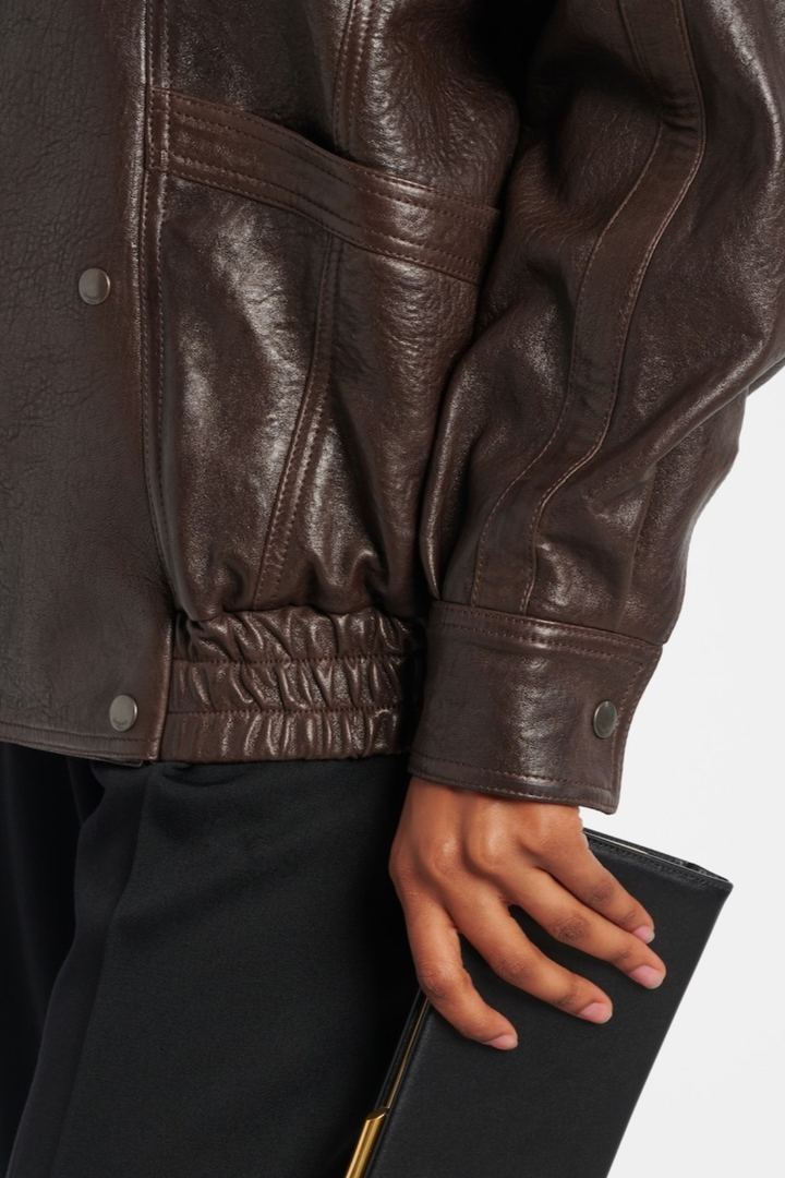 This Aohan Leather Bomber Jacket is a luxurious and elegant addition to any wardrobe. Crafted from high-quality leather, it features a classic bomber style with a modern twist. The perfect combination of style and functionality, this jacket will elevate any outfit and keep you warm and stylish all season long.