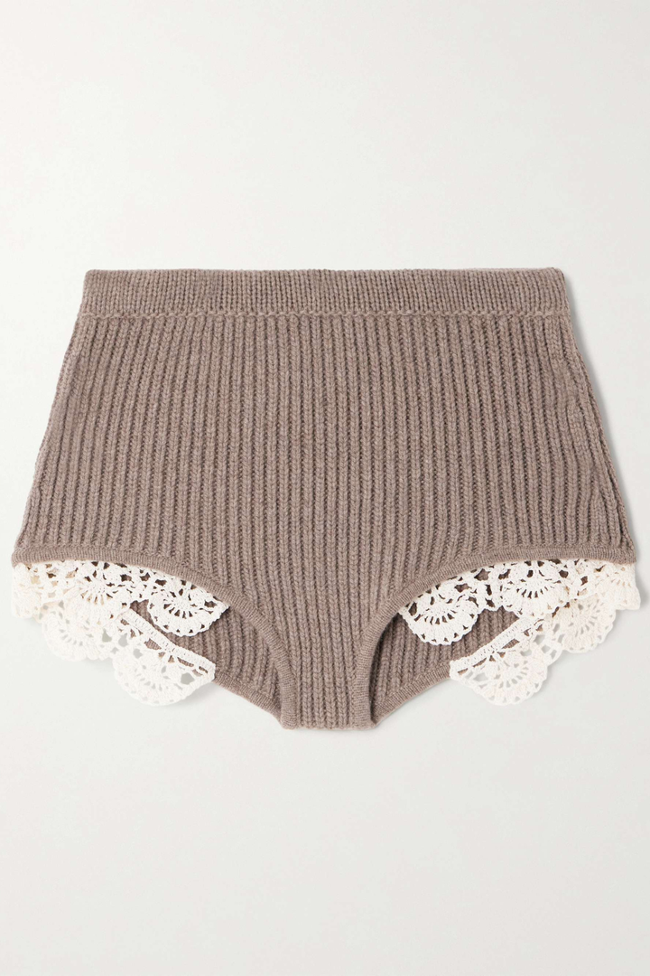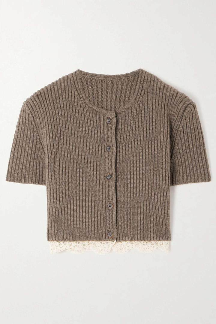 Ardesia Crochet-trimmed Knit Set -Khaki