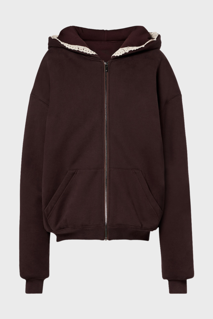 Ardesia Crochet-trimmed Zip-up Hoodie - Chocolate