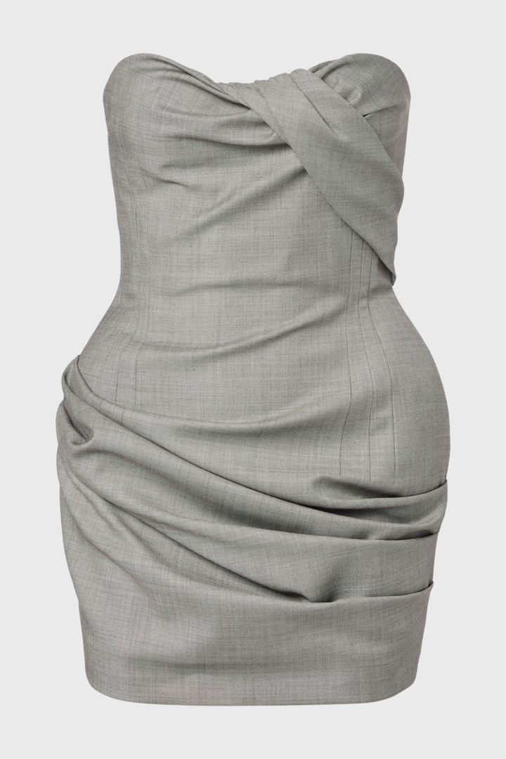 Assisi Strapless Draped Mini Dress - Grey