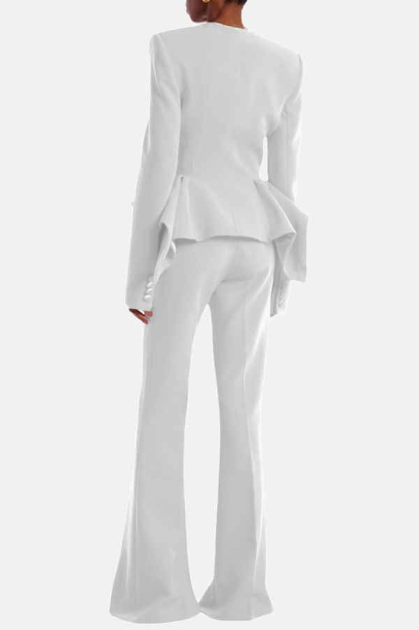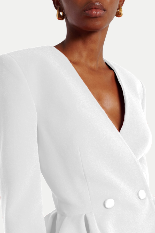 Elevate your wardrobe with the Audith Ruffled Blazer Two Piece Set. This luxurious set features a beautifully tailored blazer with delicate ruffled detailing, paired with a matching skirt. Perfect for any occasion, this set exudes sophistication and elegance. Make a statement with this exclusive and chic addition to your closet.