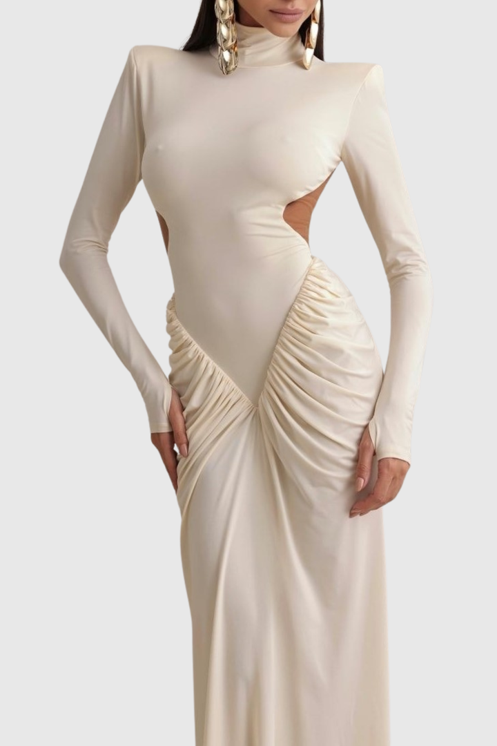 Azizi Ruched Cutout Maxi Dress - Beige