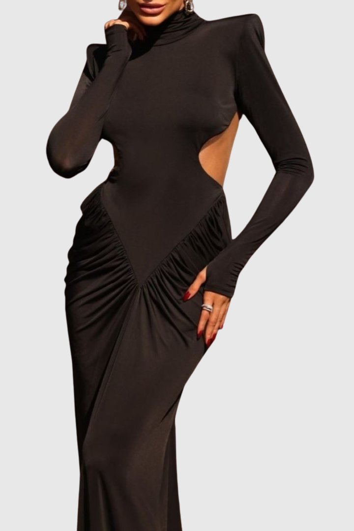 Elevate your evening wardrobe with the Azizi Ruched Cutout Maxi Dress, a striking piece that seamlessly blends modern design with timeless elegance. The strategically placed cutouts create visual intrigue while the ruched detailing flatters your silhouette with refined sophistication. This floor-length maxi dress transitions effortlessly from upscale events to refined dinners, offering a polished look that commands attention. Perfect for those who appreciate understated luxury and contemporary style.