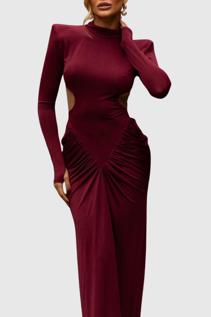 Elevate your evening wardrobe with the Azizi Ruched Cutout Maxi Dress, a striking piece that seamlessly blends modern design with timeless elegance. The strategically placed cutouts create visual intrigue while the ruched detailing flatters your silhouette with refined sophistication. This floor-length maxi dress transitions effortlessly from upscale events to refined dinners, offering a polished look that commands attention. Perfect for those who appreciate understated luxury and contemporary style.