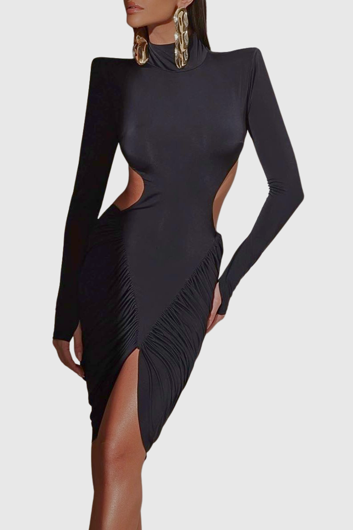 Elevate your evening wardrobe with the Azizi Ruched Cutout Mini Dress, a striking piece that seamlessly blends modern design with timeless elegance. Featuring strategically placed cutouts and refined ruching throughout, this dress creates a flattering silhouette while maintaining an air of sophistication. The mini length offers versatility for both cocktail events and upscale casual occasions. Crafted for those who appreciate bold yet refined style, this dress makes a confident statement without compromising on grace.