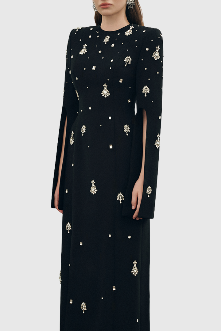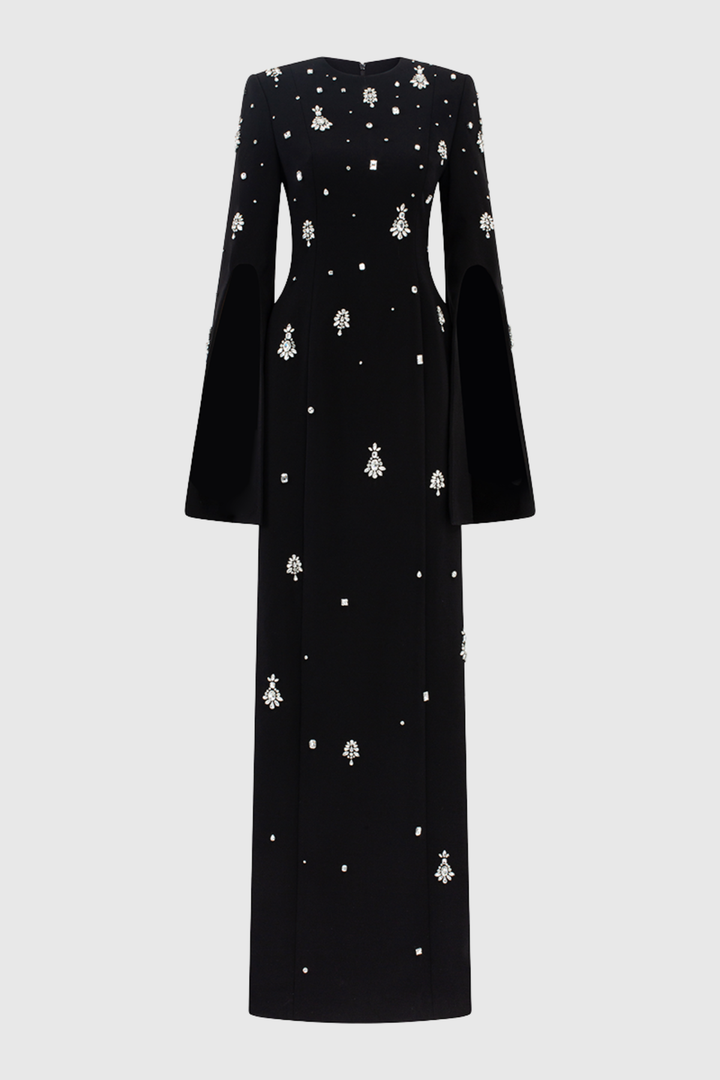 Bettina Crystal Embellished Split Sleeve Maxi Dress