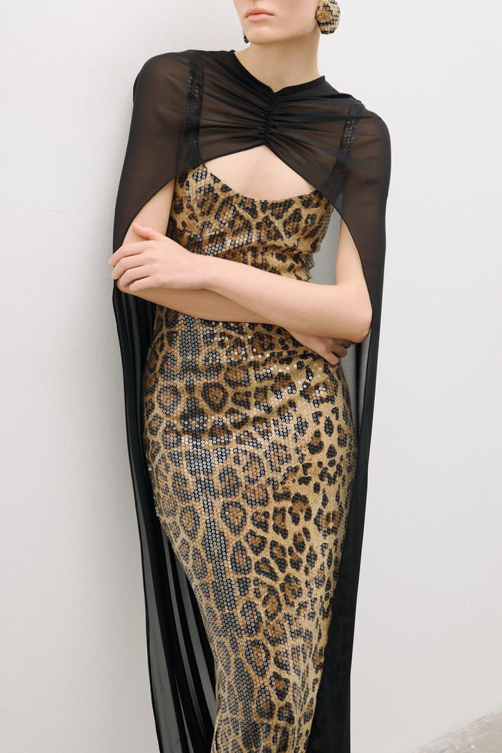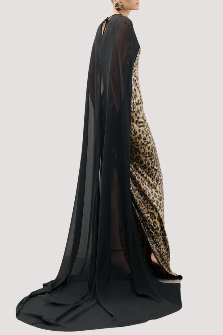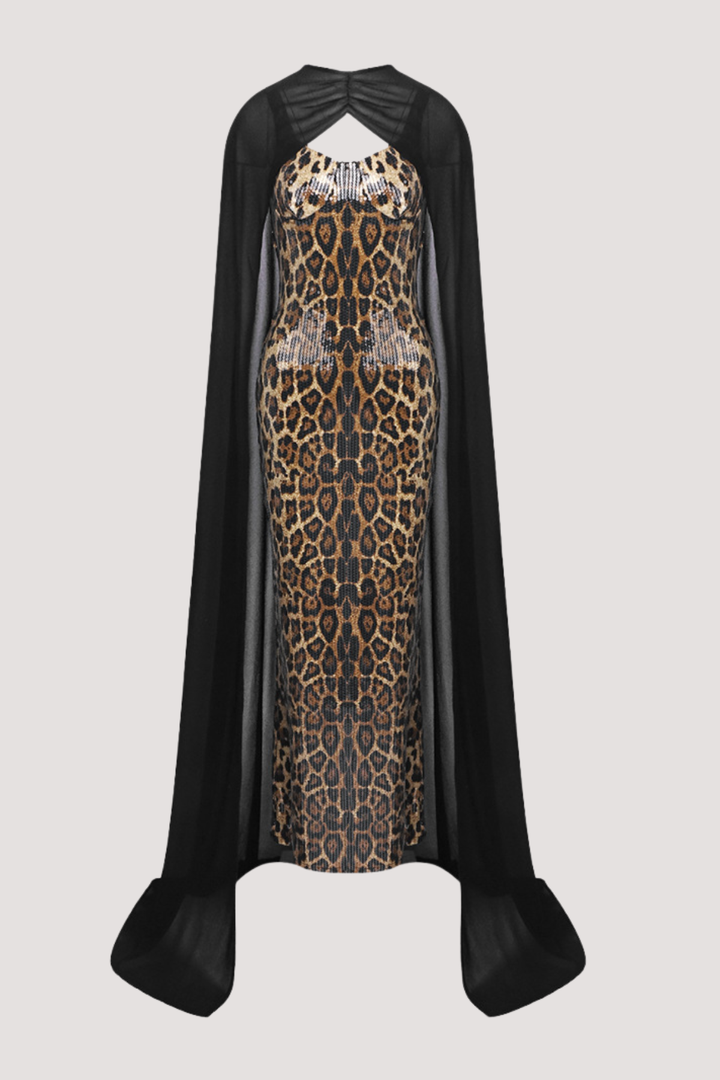 Borgna Leopard Sequin Maxi Dress & Cape Set