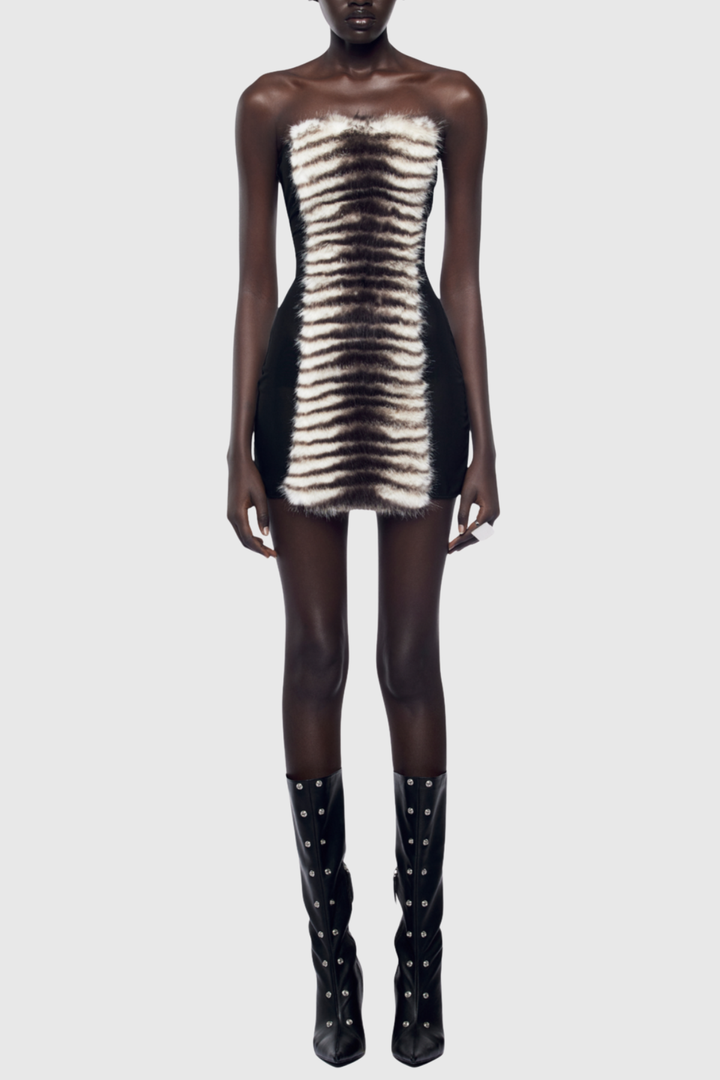 Boyne Faux Fur Strapless Mini Dress - Zebra