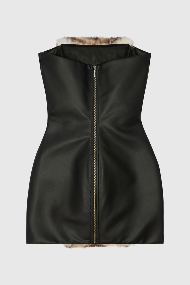 Elevate your evening wear with the Boyne Faux Fur Strapless Mini Dress. This sophisticated piece features a luxurious faux fur texture that adds a touch of glamour, while its strapless design highlights your shoulders and neckline with elegance. The mini length offers a chic, modern silhouette perfect for upscale events or stylish nights out. Crafted to combine comfort and statement style, this dress ensures you stand out with refined confidence.