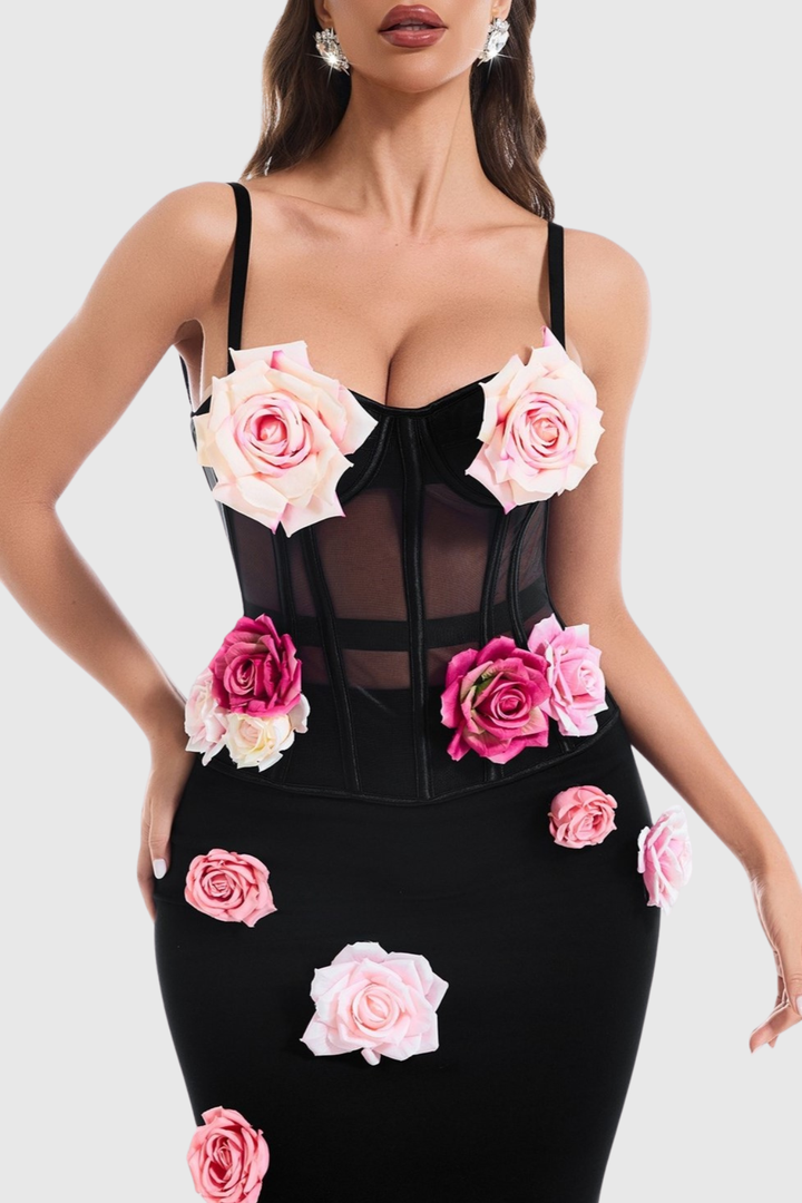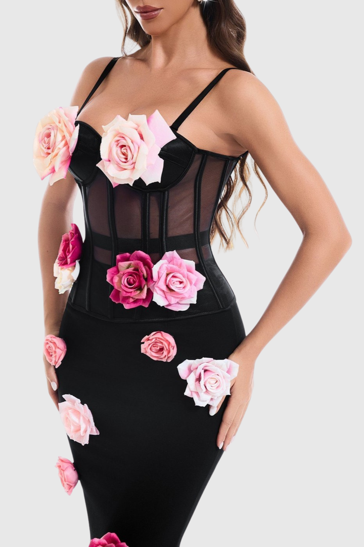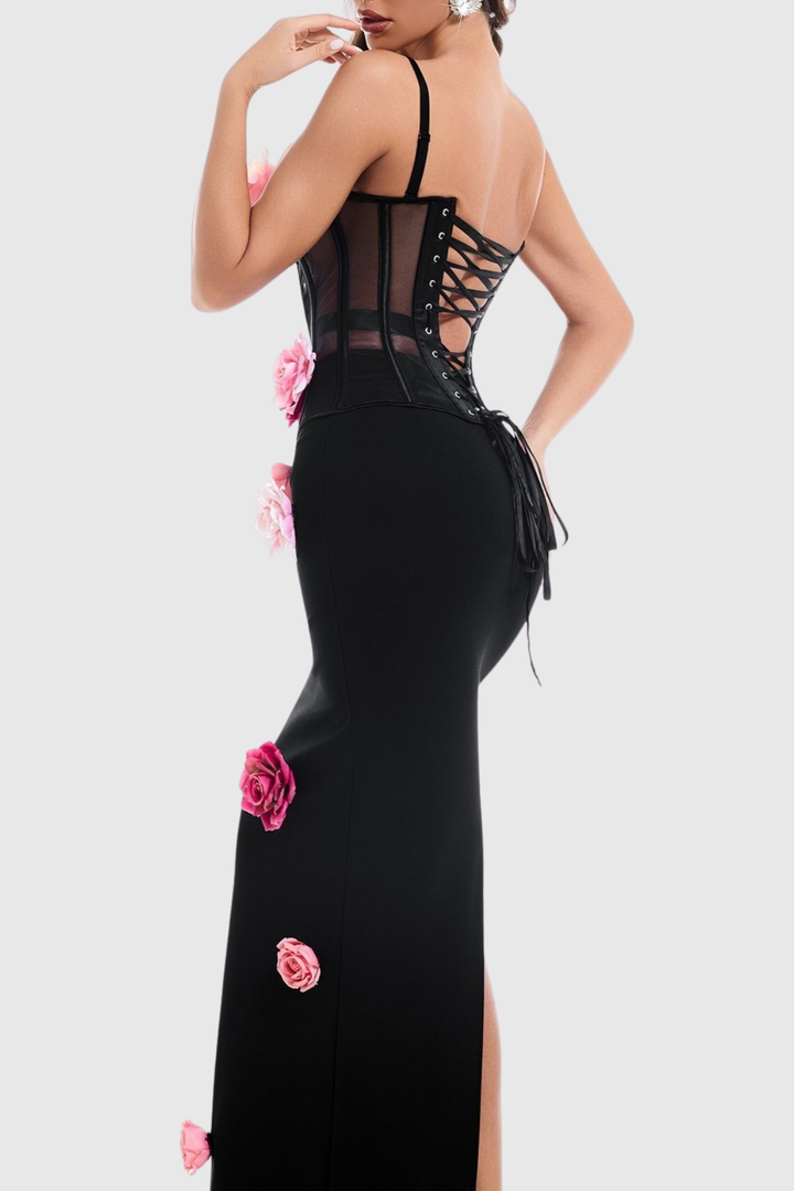 Brynle Floral Appliqué Corset & Maxi Skirt Set