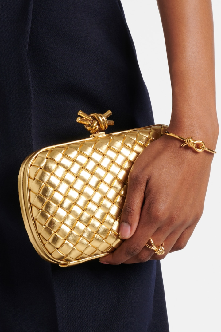 Elevate your evening ensemble with the Capella Woven Knot Clutch, a refined accessory that seamlessly blends artisanal craftsmanship with contemporary elegance. This sophisticated clutch features an intricate woven knot design that catches the light beautifully, making it the perfect companion for formal occasions or upscale gatherings. The compact silhouette offers just enough space for your essentials while maintaining a polished, understated aesthetic. Crafted with meticulous attention to detail, this piece exudes timeless luxury and pairs effortlessly with any sophisticated wardrobe.