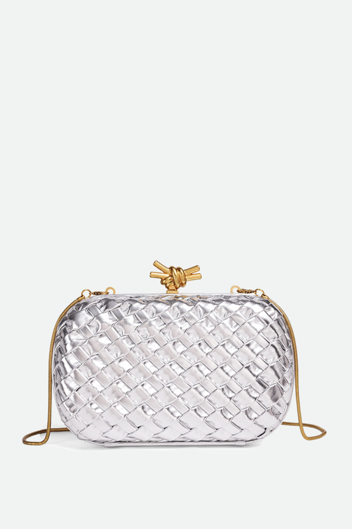 Elevate your evening ensemble with the Capella Woven Knot Clutch, a refined accessory that seamlessly blends artisanal craftsmanship with contemporary elegance. This sophisticated clutch features an intricate woven knot design that catches the light beautifully, making it the perfect companion for formal occasions or upscale gatherings. The compact silhouette offers just enough space for your essentials while maintaining a polished, understated aesthetic. Crafted with meticulous attention to detail, this piece exudes timeless luxury and pairs effortlessly with any sophisticated wardrobe.