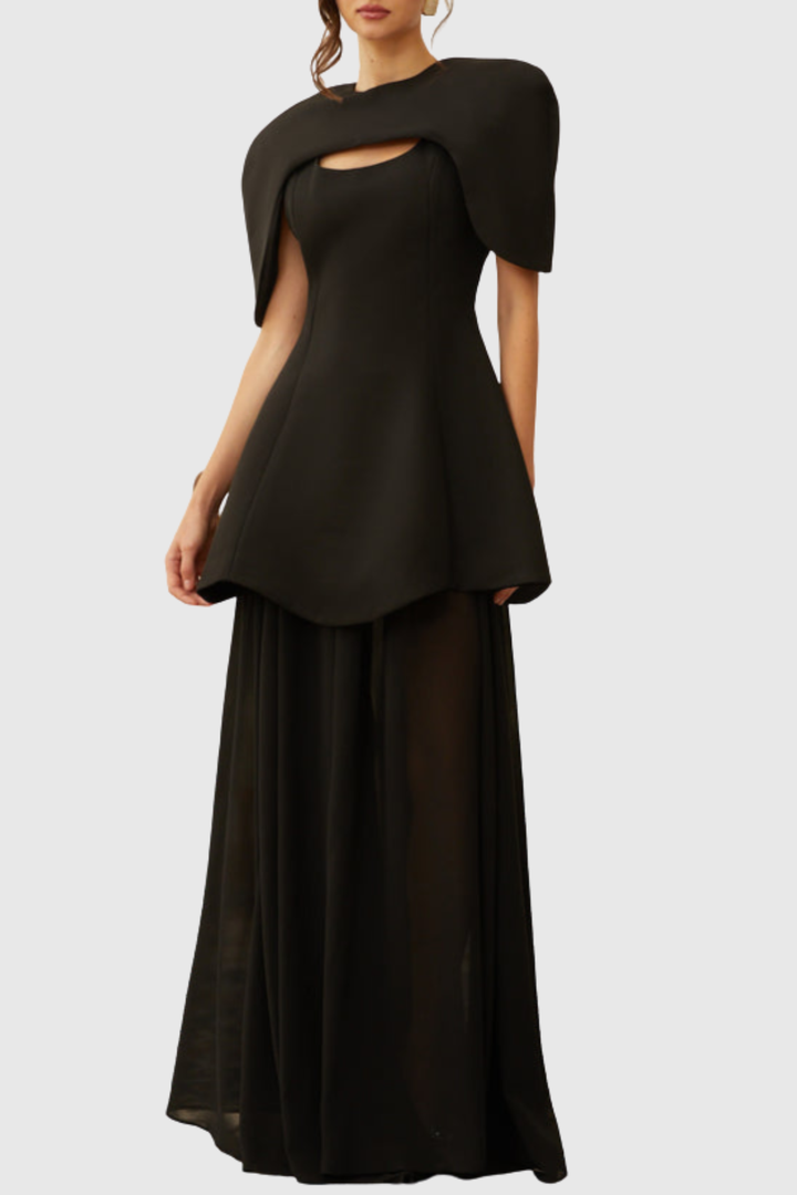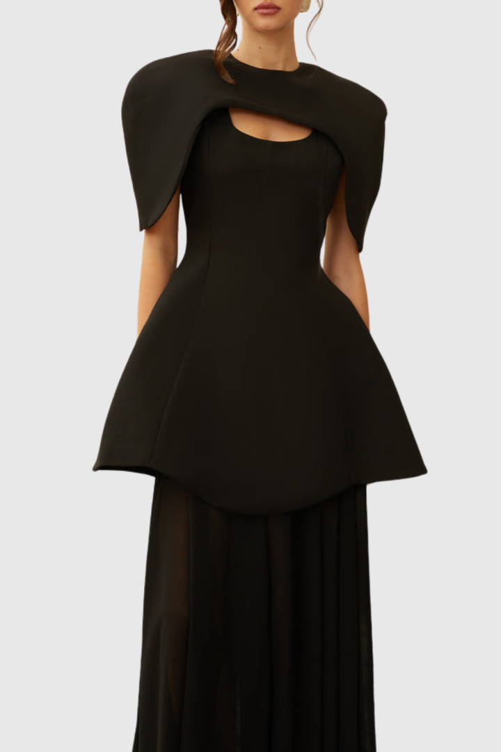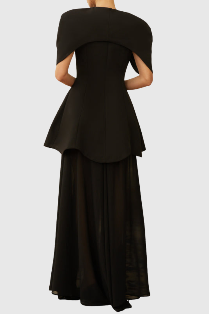 Carlotta Cape Sculptural Top & Maxi Dress Set - Black