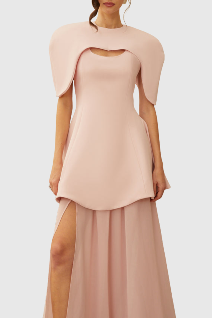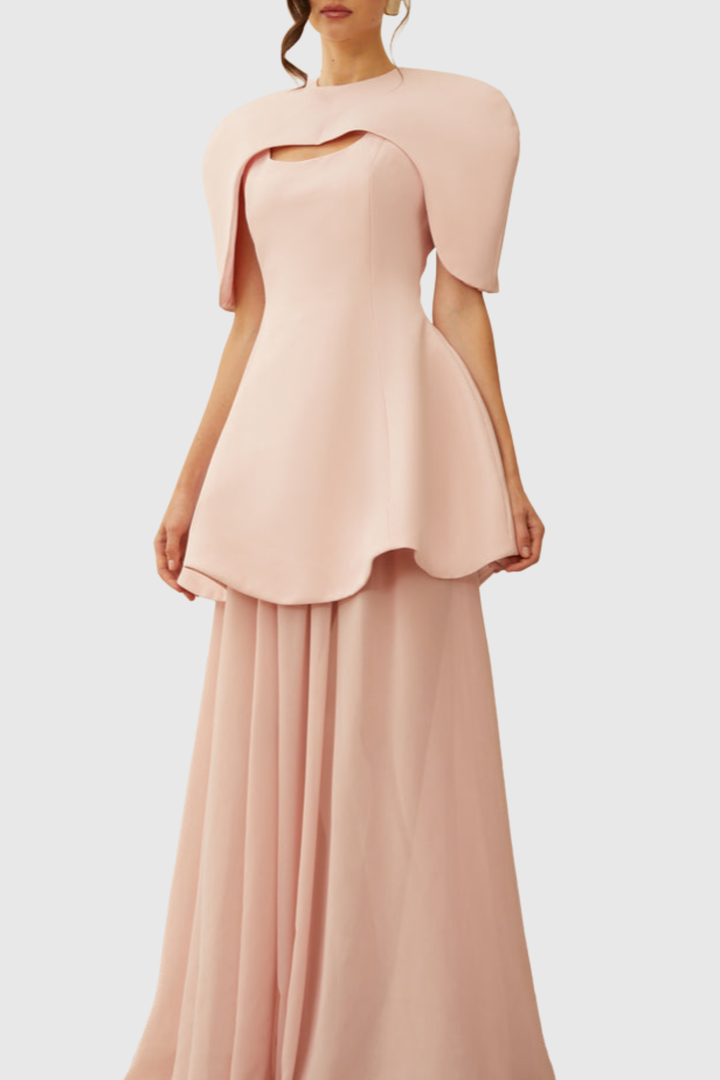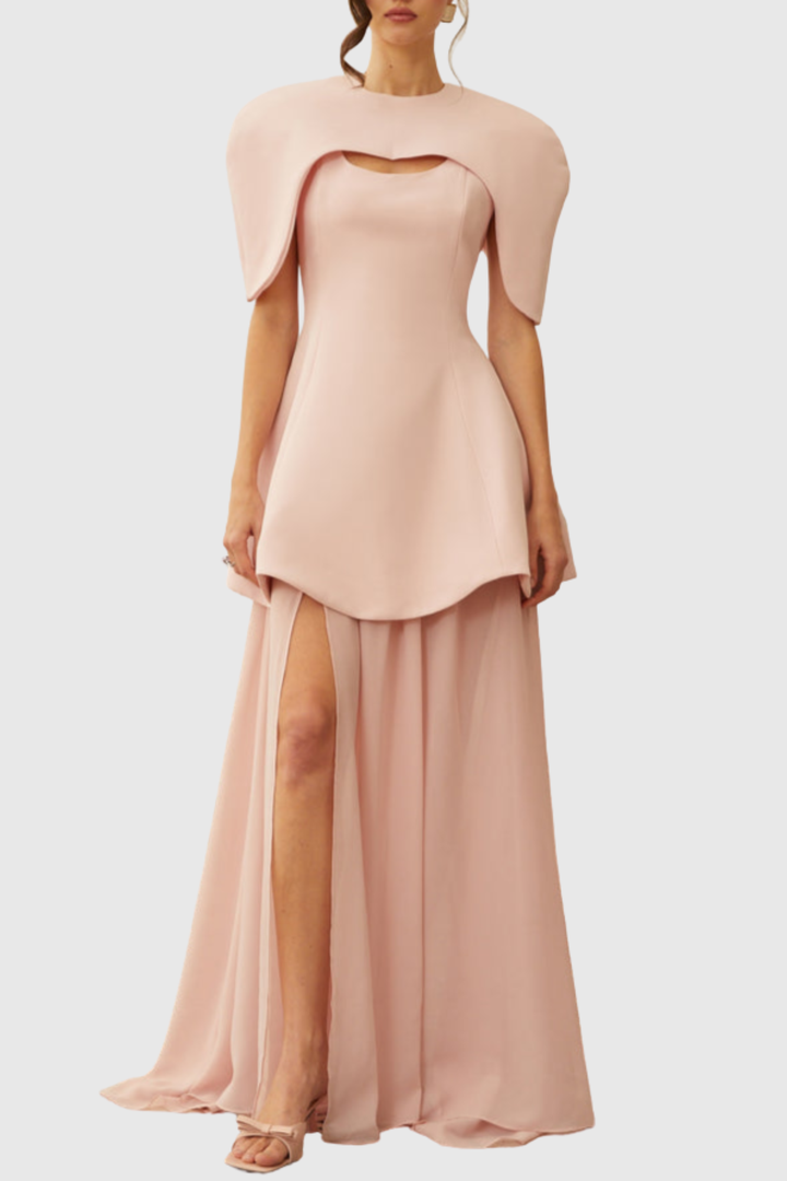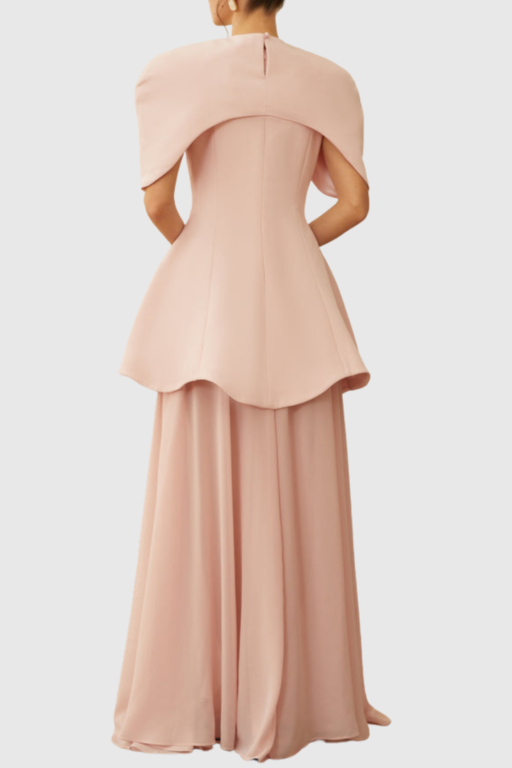Carlotta Cape Sculptural Top & Maxi Dress Set - Pink