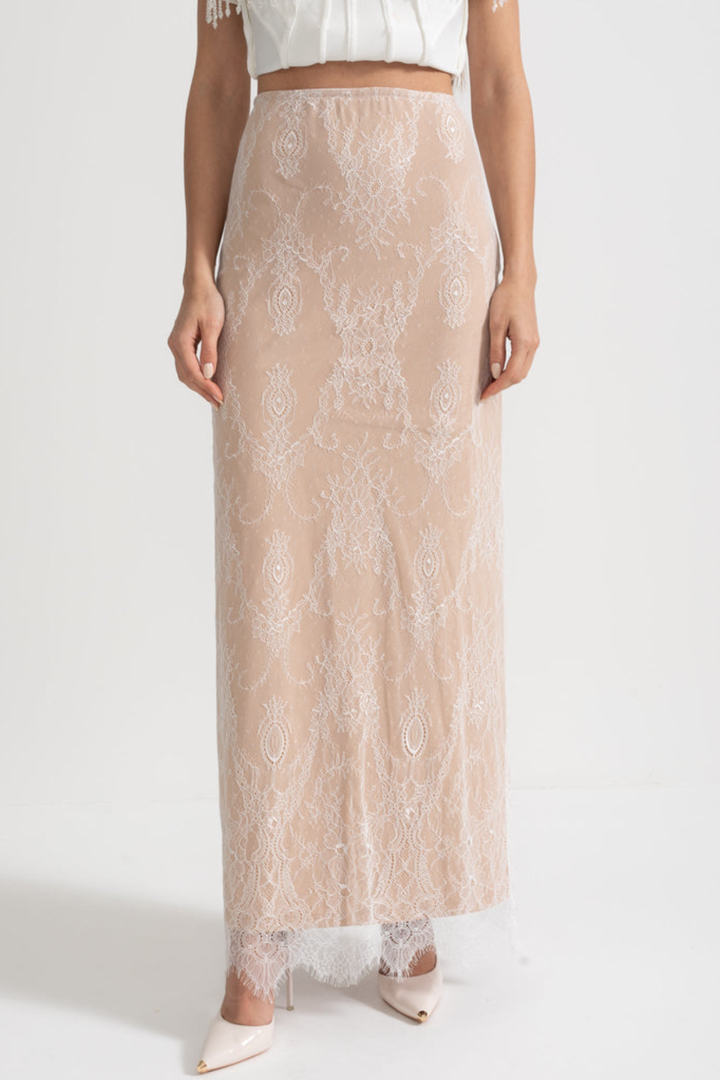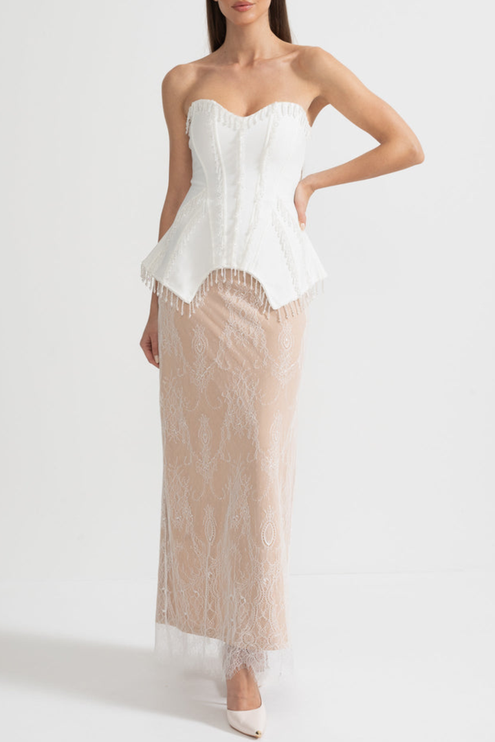 Chiara Bead Embellished Corset & Lace Skirt Set