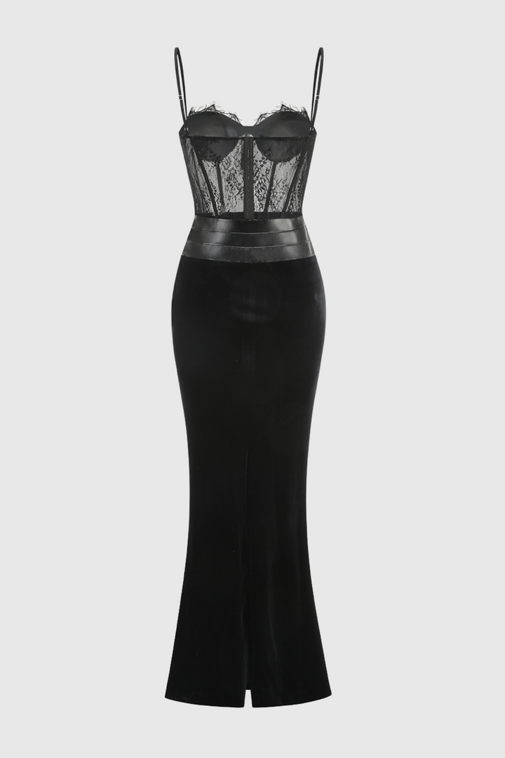 Elevate your evening wardrobe with the Christena Lace Corset Velvet Maxi Dress. This sophisticated gown features a delicate lace corset bodice that enhances your silhouette, paired with sumptuous velvet fabric that drapes gracefully to the floor. Perfect for formal occasions, it combines timeless elegance with modern allure, ensuring you make a memorable impression wherever you go.