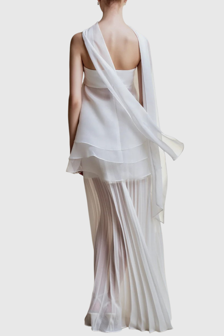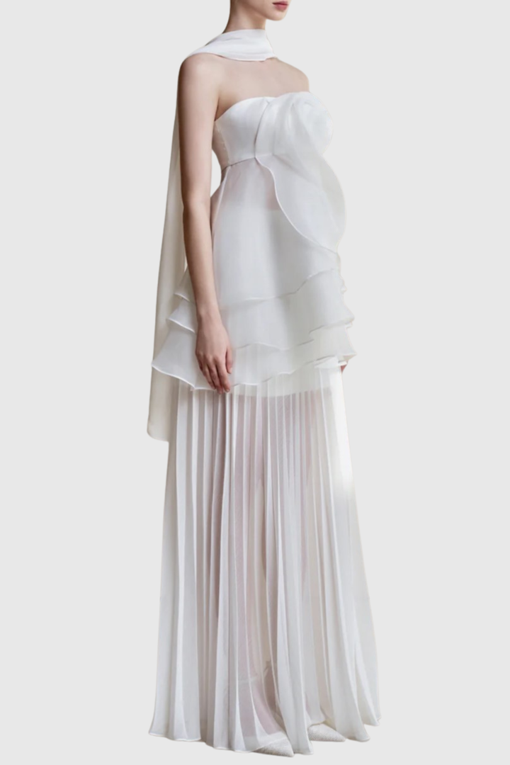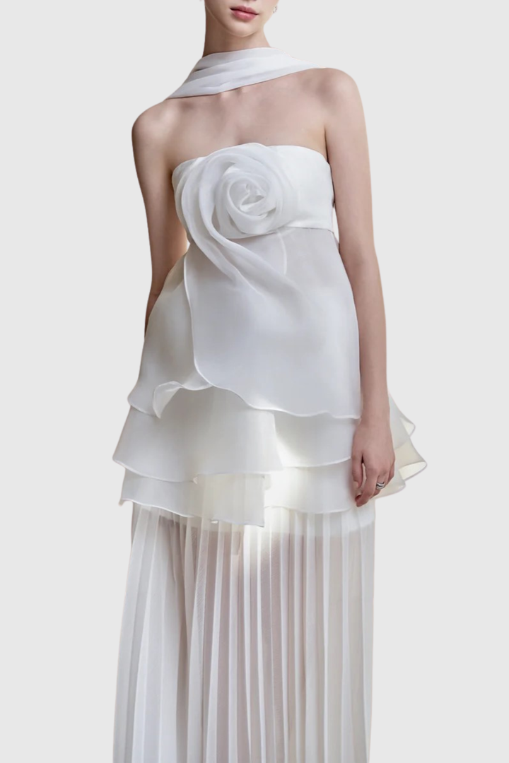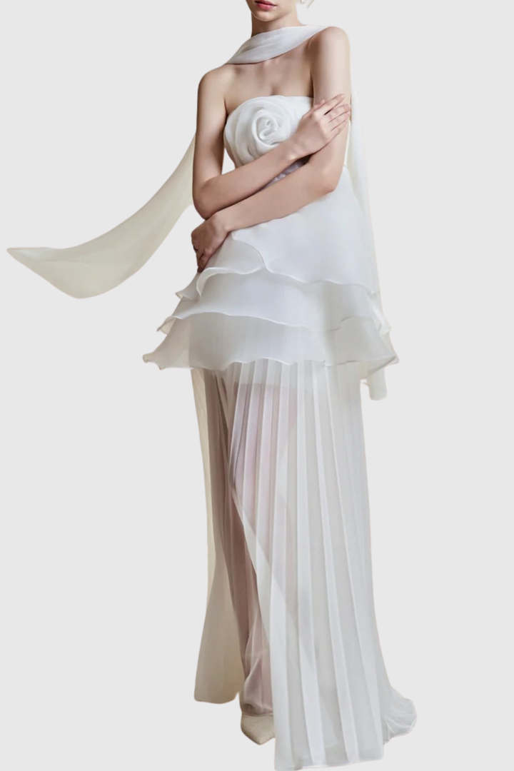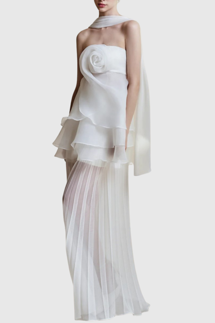 Citrine Floral Strapless Pleated Maxi Dress