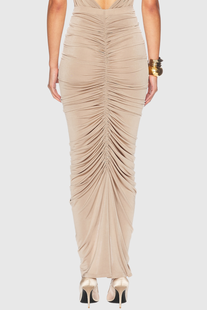 Elevate your evening wardrobe with this stunning Citrine Halter Ruched Maxi Dress. The flattering halter neckline frames the shoulders beautifully, while strategic ruching creates a refined silhouette that skims the body gracefully. Crafted in a luxurious citrine hue, this floor-length gown transitions seamlessly from formal events to upscale gatherings. The elegant draping and thoughtful construction ensure you'll feel confident and poised. Perfect for those seeking timeless sophistication with contemporary flair.