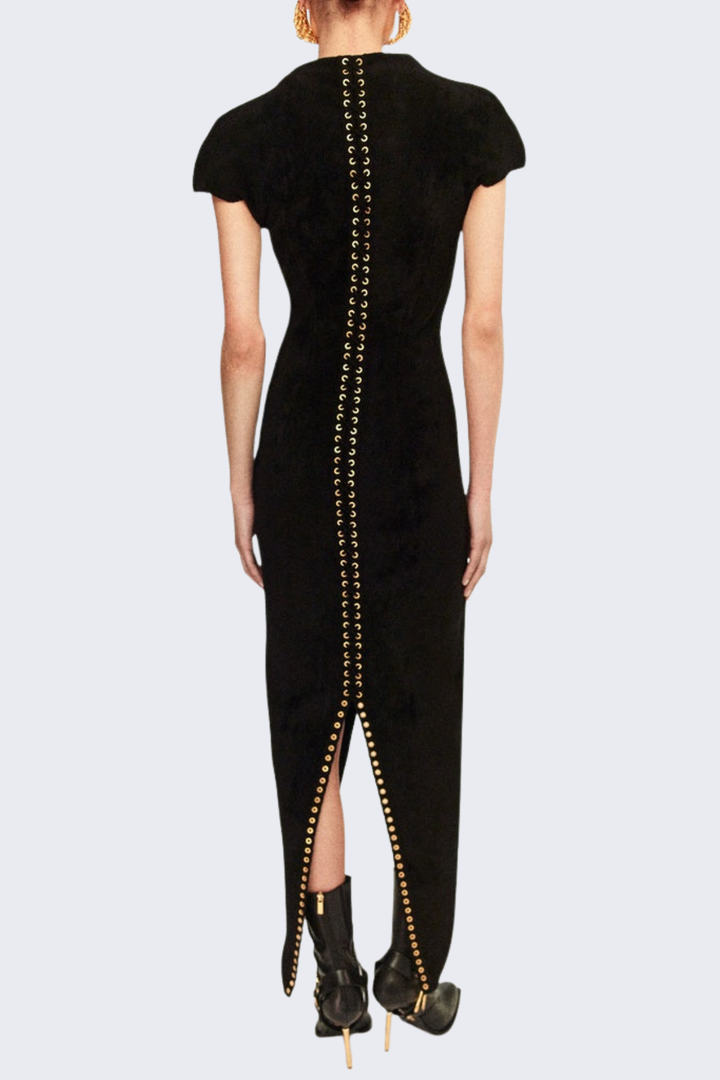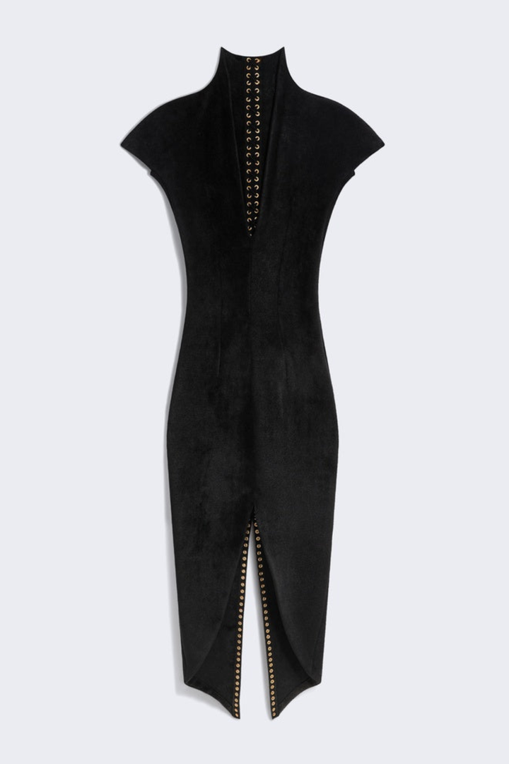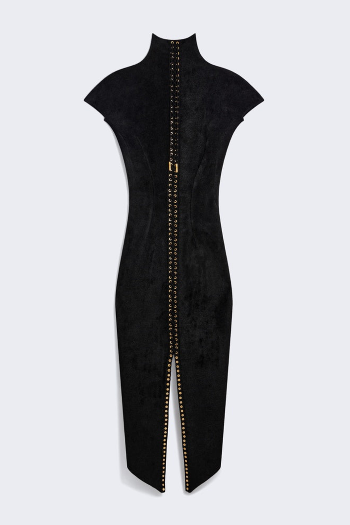Elevate your wardrobe with the Clotia Lace Up Split Midi Dress, a refined piece that seamlessly blends elegance with contemporary style. Featuring a flattering lace-up front detail and a graceful midi length, this dress offers a sophisticated silhouette perfect for evening events or upscale occasions. The strategic split design adds movement and visual interest while maintaining an air of understated luxury. Crafted for those who appreciate timeless femininity with a modern edge, this dress is an investment in versatile, polished dressing.