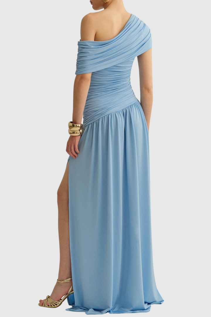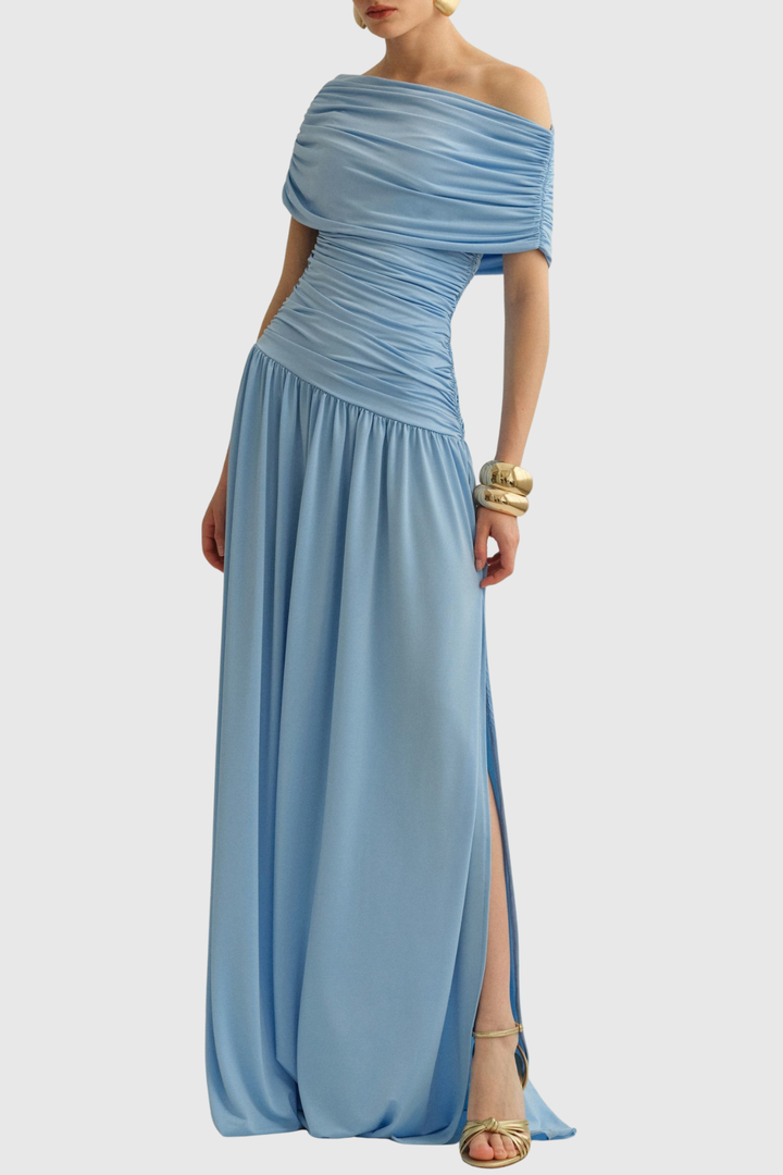 The Coraha Off Shoulder Ruched Maxi Dress combines timeless elegance with contemporary design. Featuring a graceful off-shoulder neckline and strategically placed ruching that flatters the silhouette, this maxi dress transitions seamlessly from evening events to upscale occasions. The flowing fabric drapes beautifully, creating an effortlessly refined look that exudes confidence and poise. Perfect for those who appreciate understated luxury and classic sophistication.