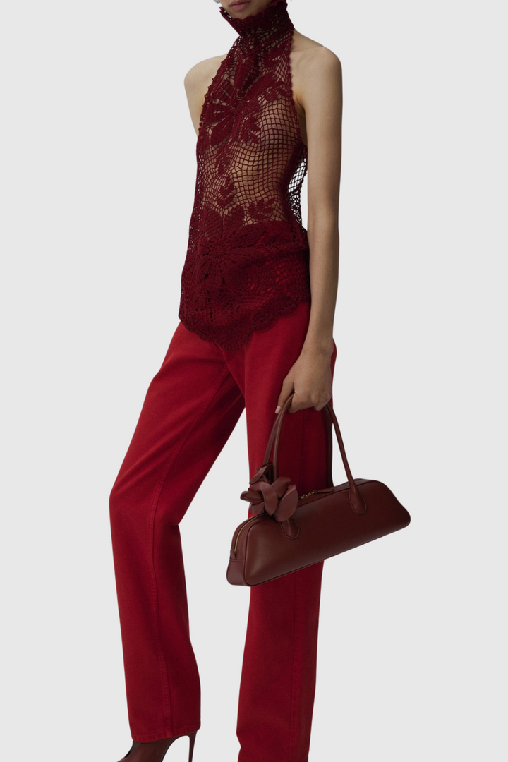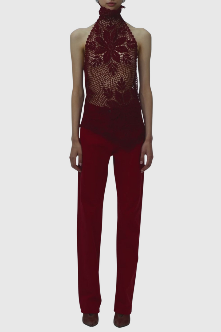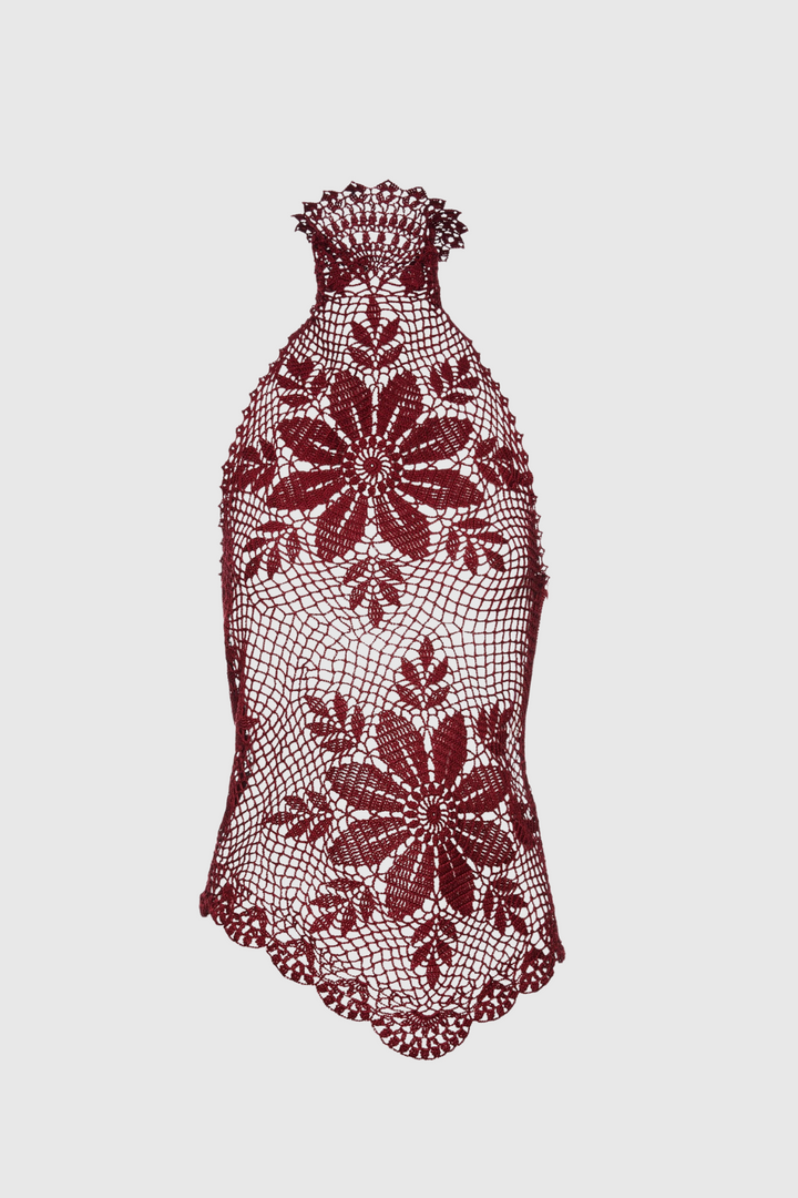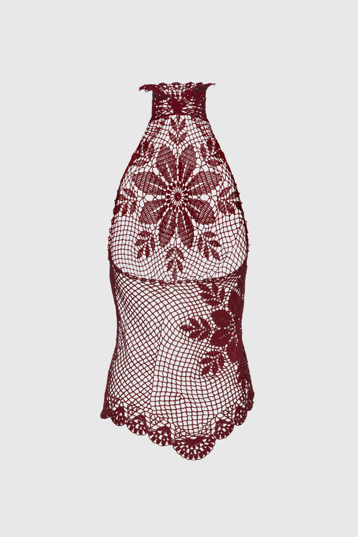 Elevate your wardrobe with the Corliss Floral Lace Crochet Top in Wine. This exquisite piece features intricate floral lace detailing crafted with precision, offering a refined yet delicate texture. Its rich wine hue adds a touch of elegance, perfect for sophisticated occasions or stylish layering. Designed to flatter with a timeless silhouette, this crochet top brings a subtle allure to any ensemble.