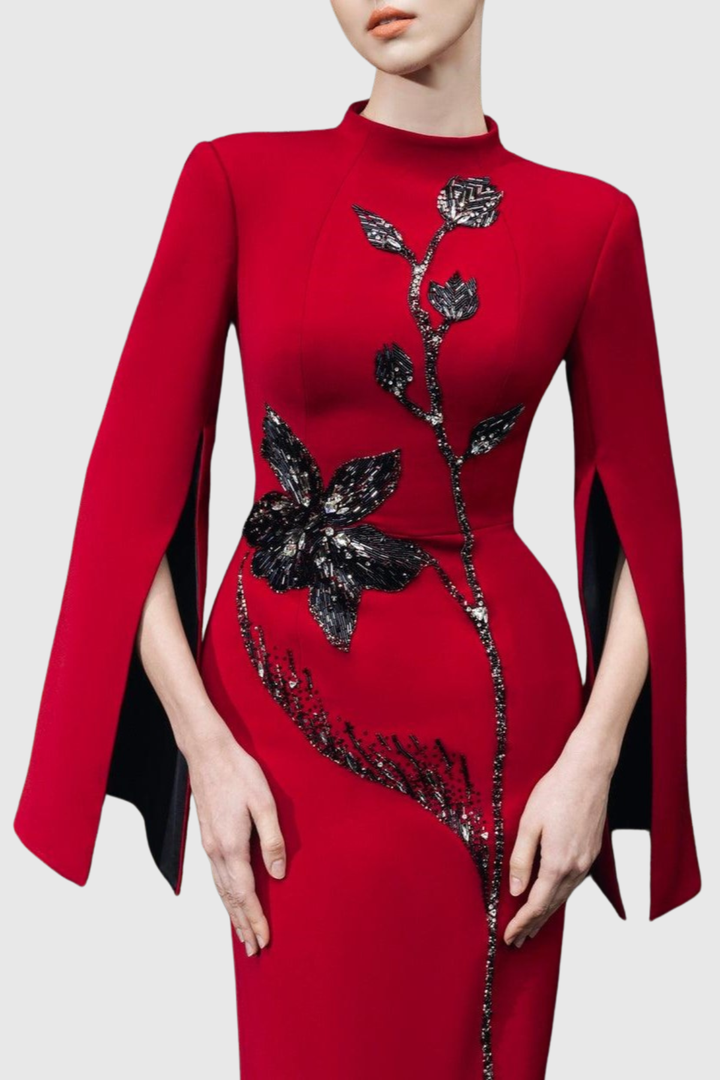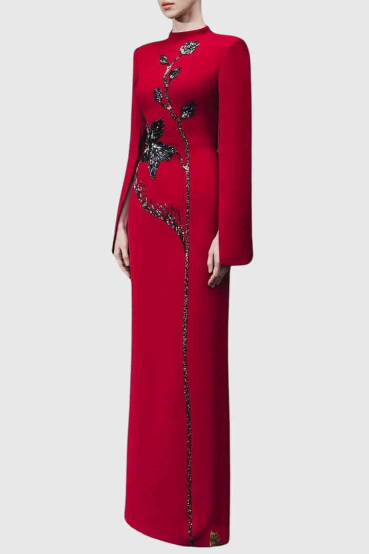 Elevate your evening wardrobe with the Cruka Floral Bead Embellished Maxi Dress, a stunning piece that seamlessly blends elegance with artistic detail. This floor-length gown features intricate floral patterns adorned with delicate beadwork that catches the light beautifully, creating an enchanting shimmer with every movement. The refined silhouette flatters the figure while the luxurious fabric drapes gracefully, making it an ideal choice for formal events, galas, or special occasions. Perfect for those who appreciate timeless sophistication and exquisite craftsmanship.