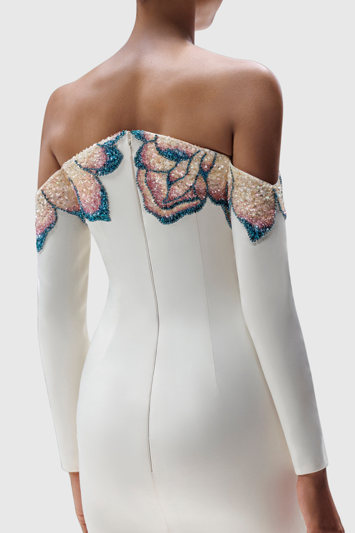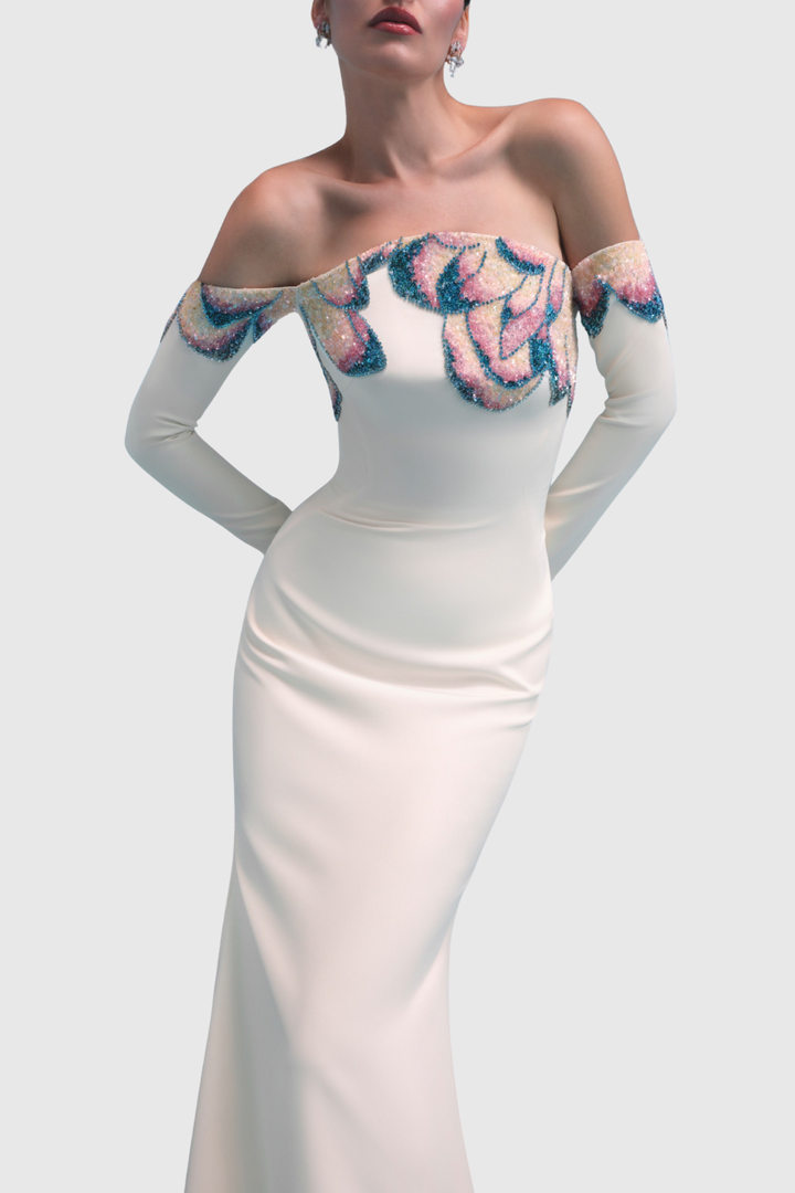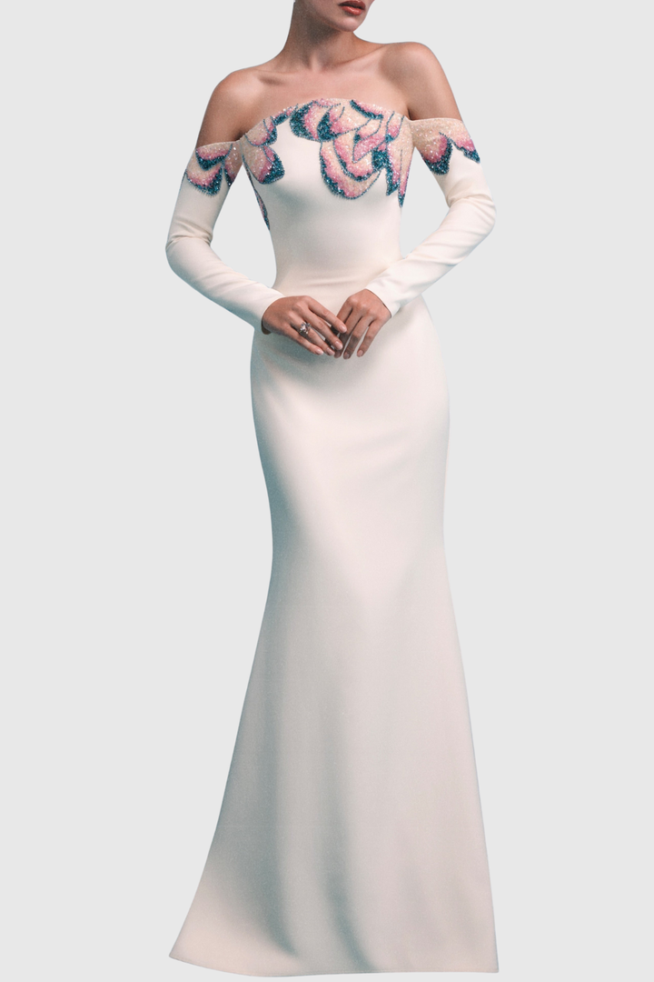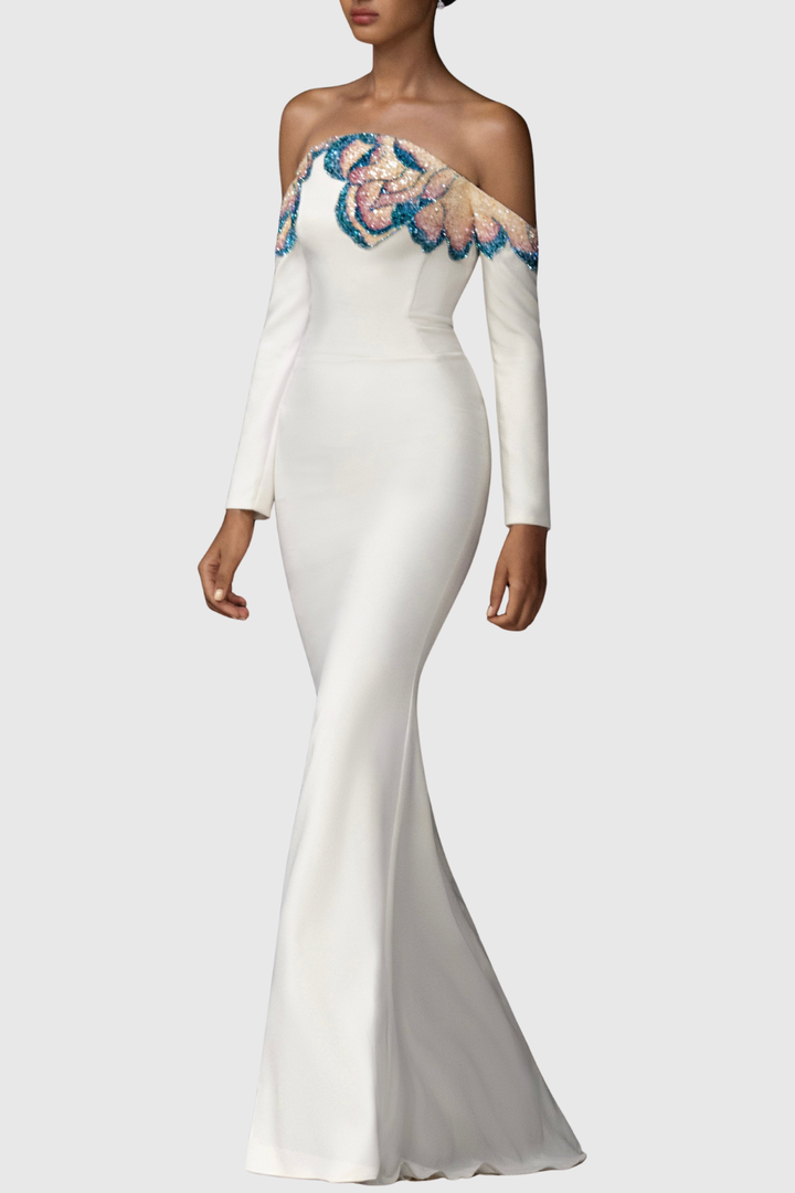 Dakar Floral Sequin Embellished Off Shoulder Maxi Dress