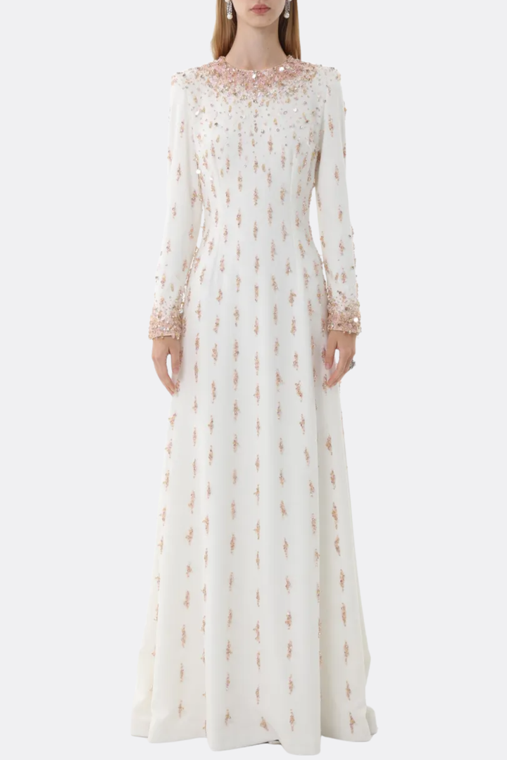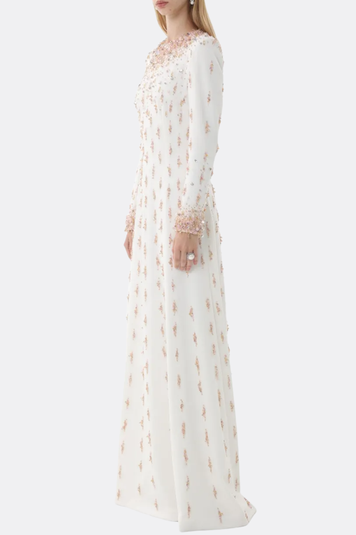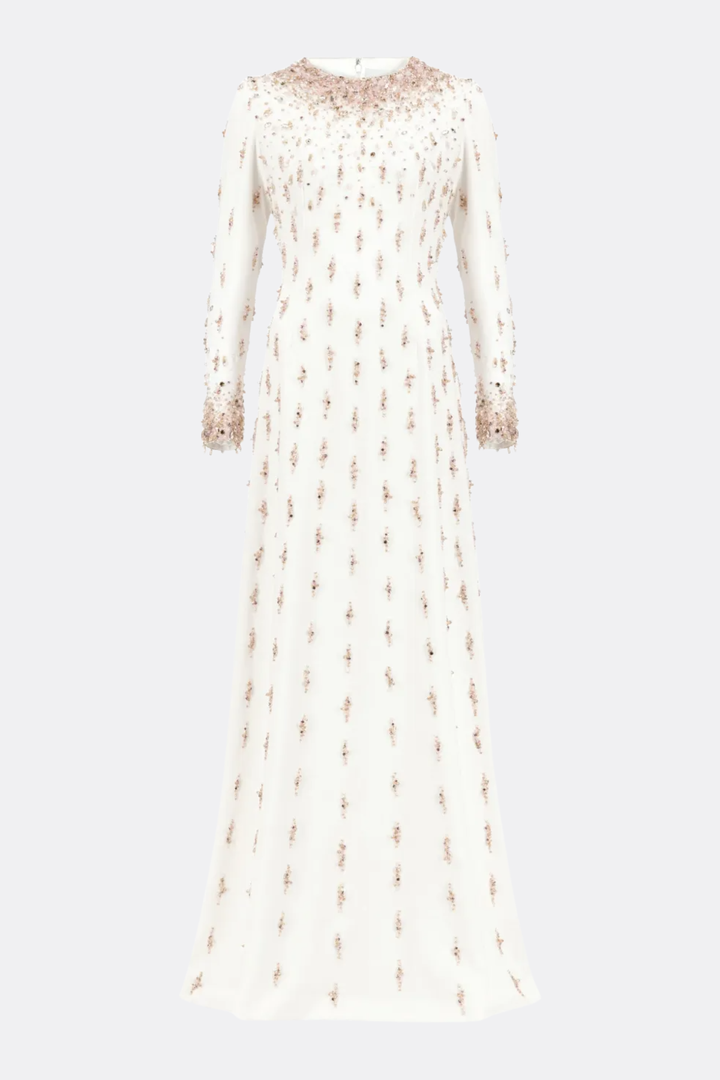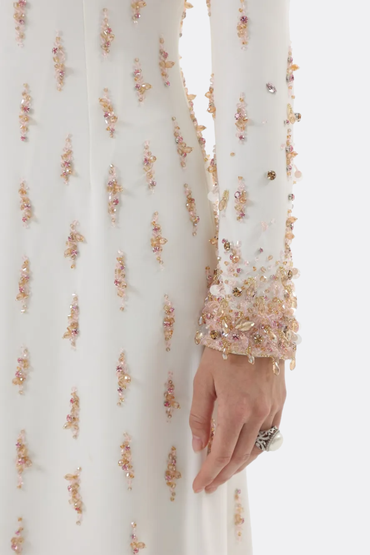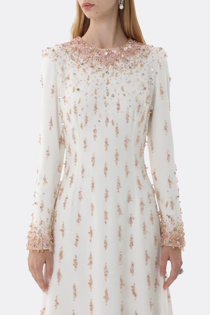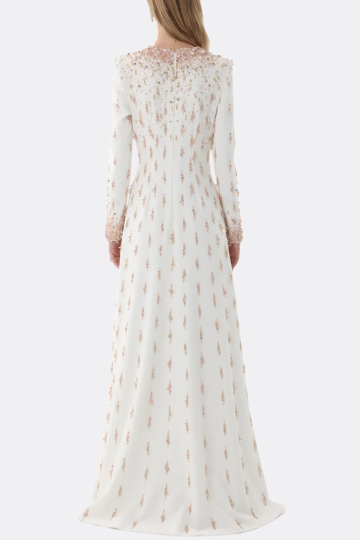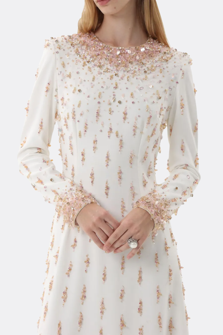 Daway Crystal Bead Embellished Maxi Dress - White