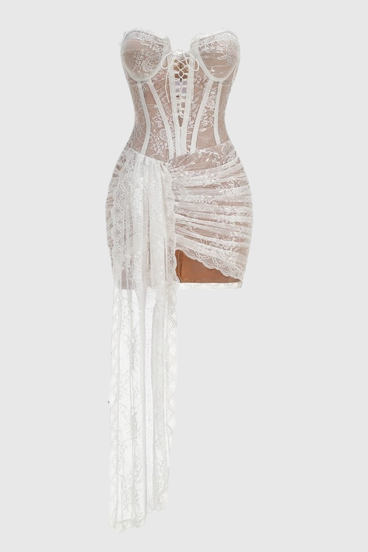 Delgado Lace Corset Strapless Mini Dress - White