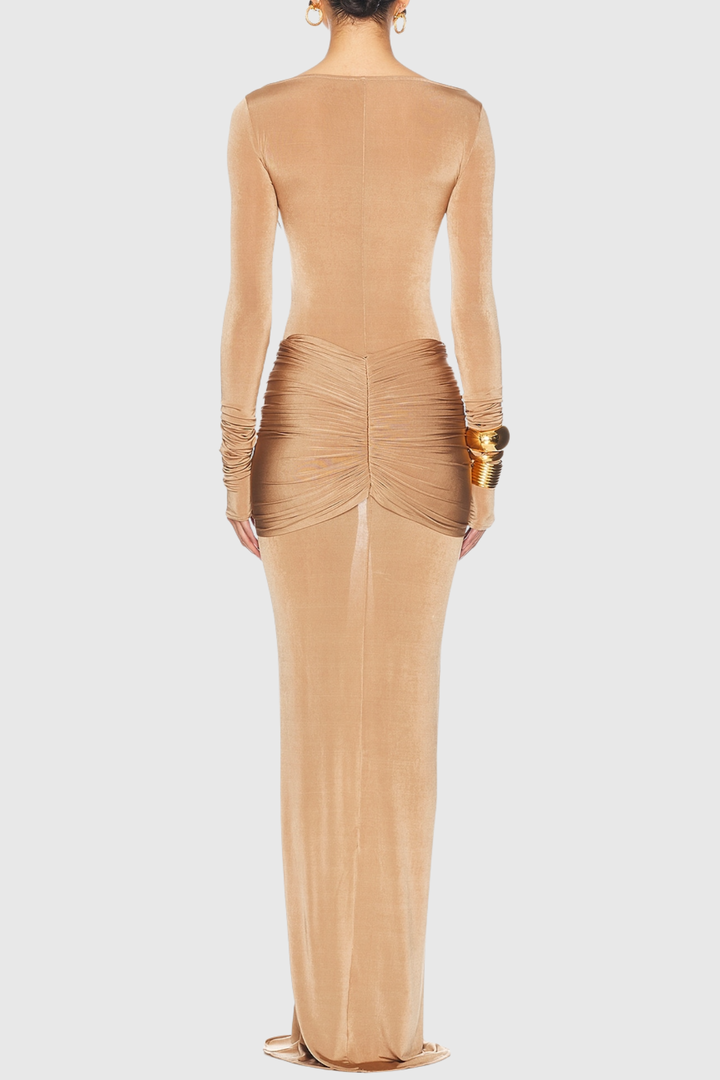 Elevate your evening wardrobe with the Dosea Ruched Maxi Dress, a timeless piece that seamlessly blends elegance with contemporary style. The expertly crafted ruching detail flatters your silhouette while creating visual interest, while the flowing maxi length offers a graceful, elongated look. Perfect for formal events, upscale dinners, or special occasions, this dress exudes refined sophistication. The thoughtful construction ensures both comfort and confidence, making it an essential addition to any discerning woman's collection.