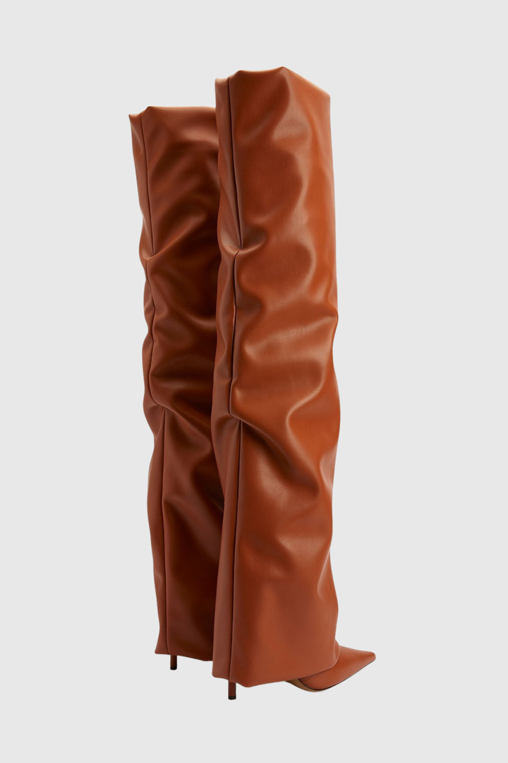 Dusya Ruched Leather Over The Knee Boots - Brown