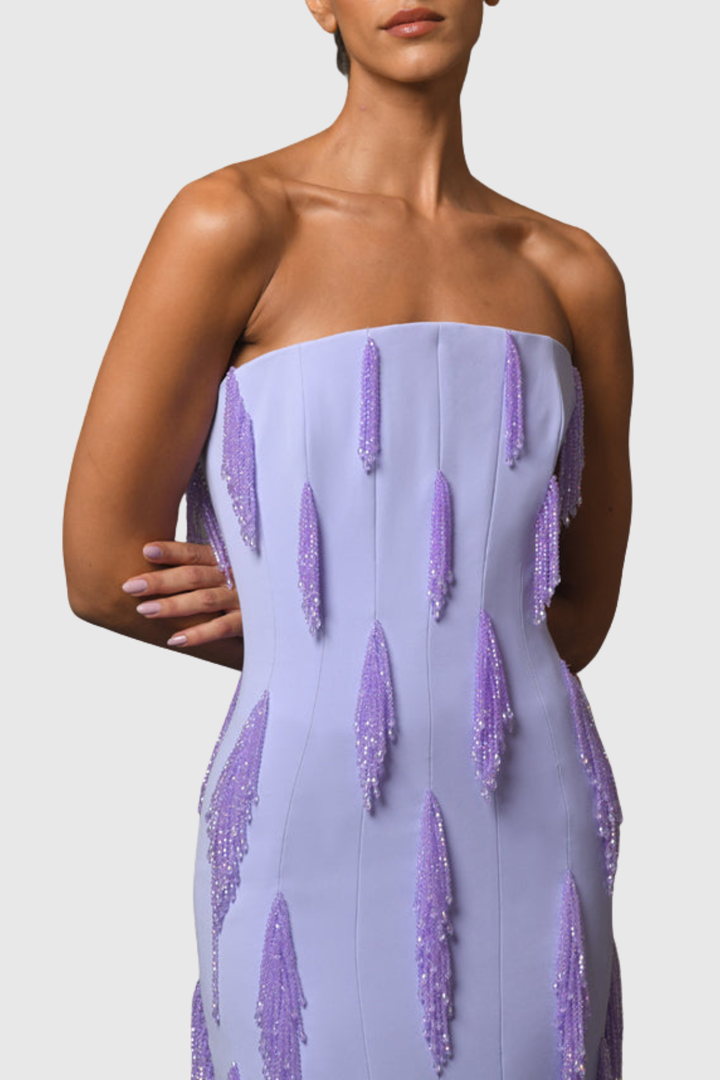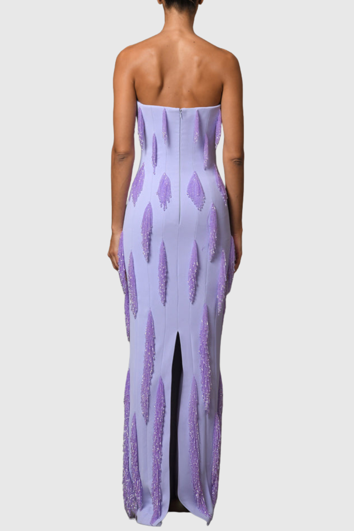 Ebony Strapless Beaded Fringe Embellished Maxi Dress