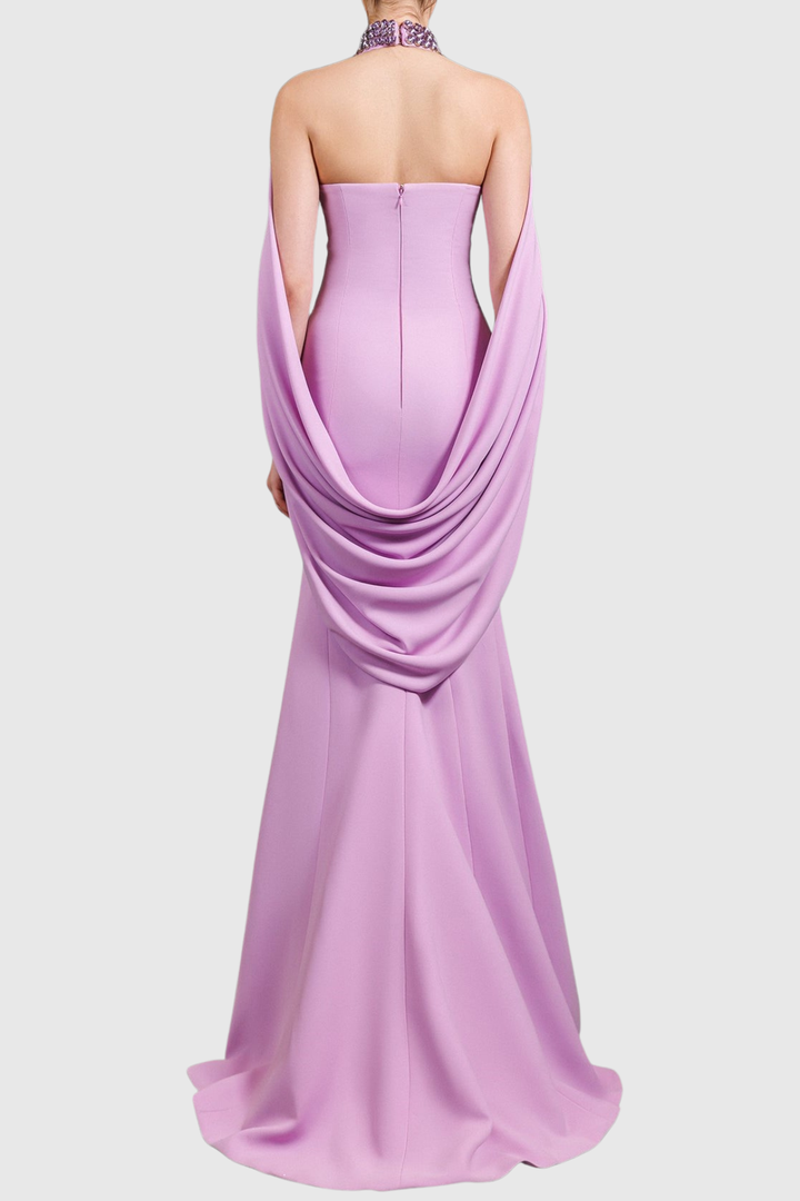 Eckste Diamante Embellished Draped Maxi Dress