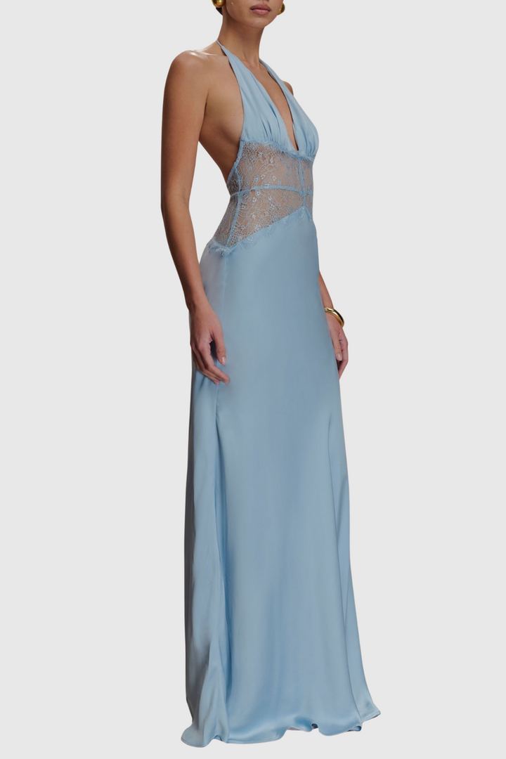 The Edwiga Lace Halter Maxi Dress embodies sophisticated charm with its intricate lace design and elegant halter neckline. Its flowing maxi length offers a graceful silhouette that enhances your poise, making it an ideal choice for upscale events and evening affairs. Embrace timeless elegance with this refined dress.