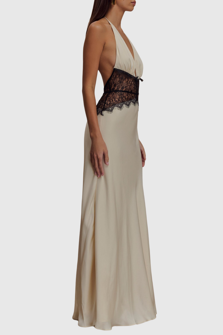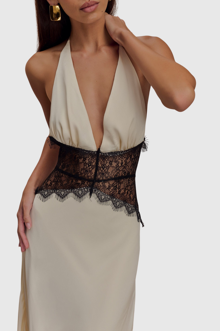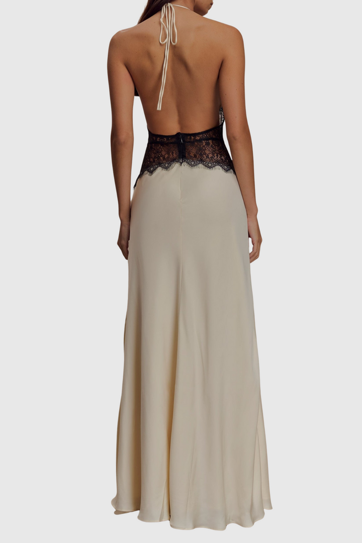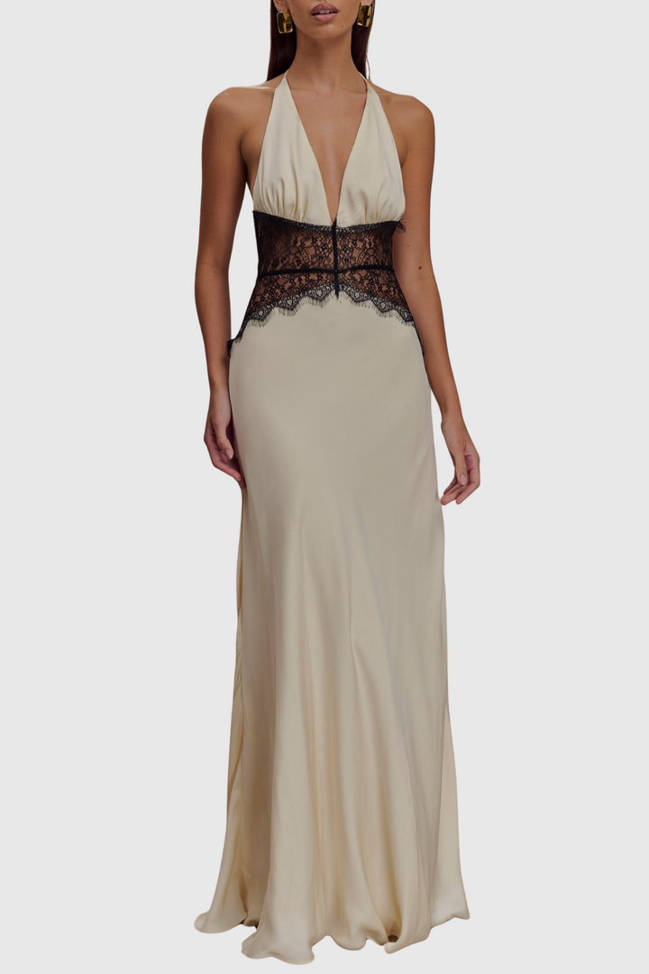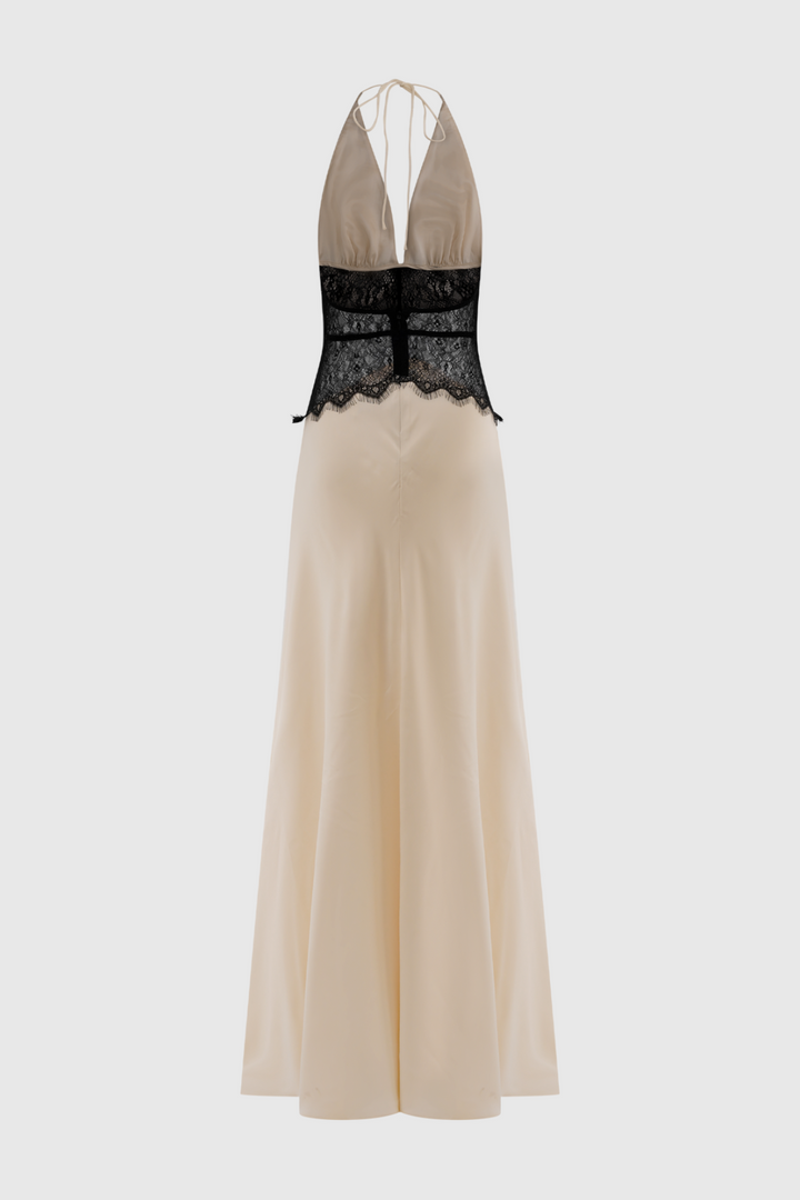 The Edwiga Lace Halter Maxi Dress embodies sophisticated charm with its intricate lace design and elegant halter neckline. Its flowing maxi length offers a graceful silhouette that enhances your poise, making it an ideal choice for upscale events and evening affairs. Embrace timeless elegance with this refined dress.