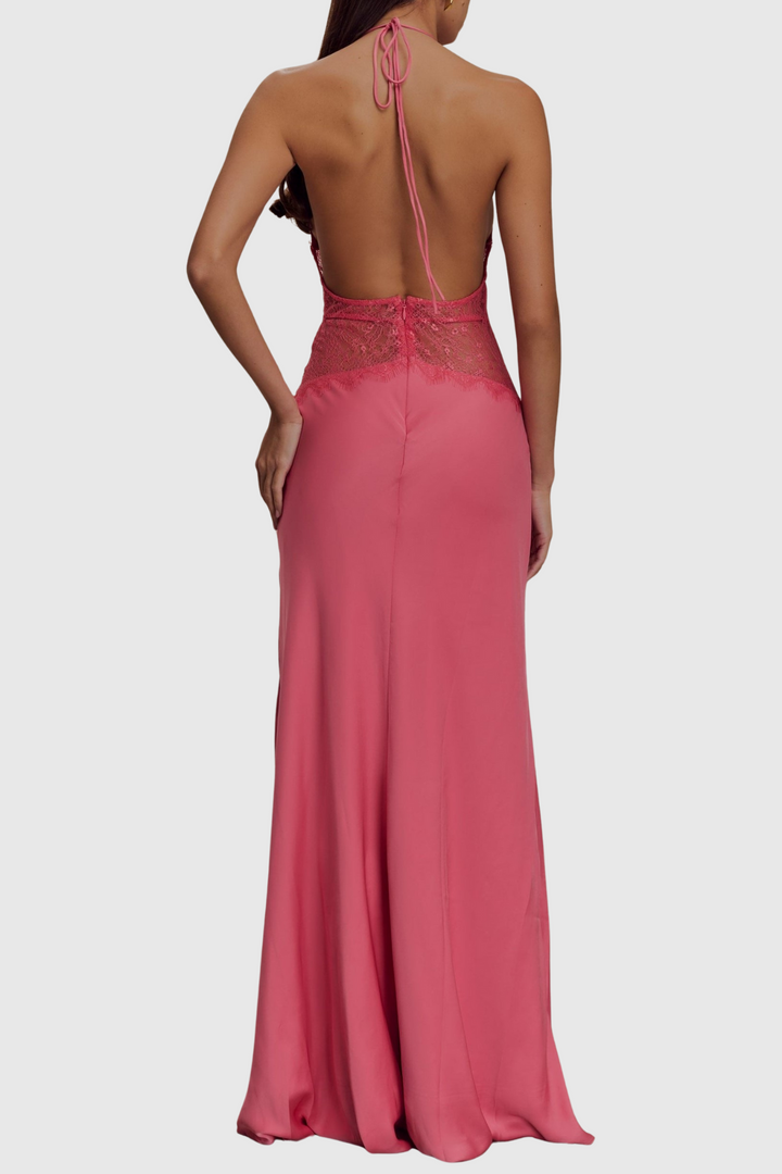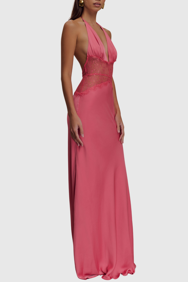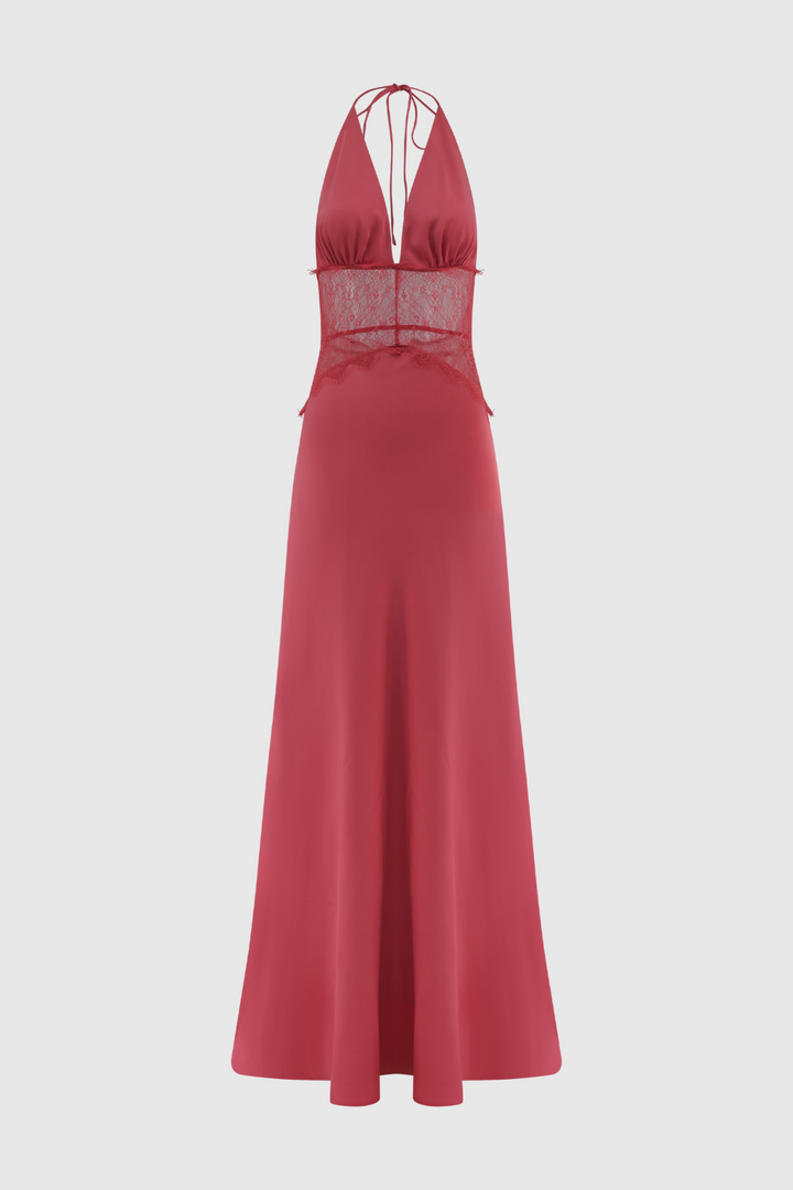 The Edwiga Lace Halter Maxi Dress embodies sophisticated charm with its intricate lace design and elegant halter neckline. Its flowing maxi length offers a graceful silhouette that enhances your poise, making it an ideal choice for upscale events and evening affairs. Embrace timeless elegance with this refined dress.