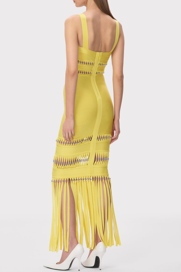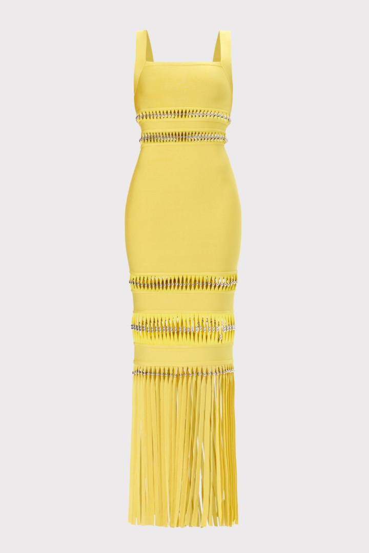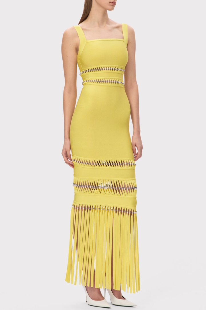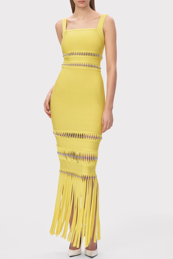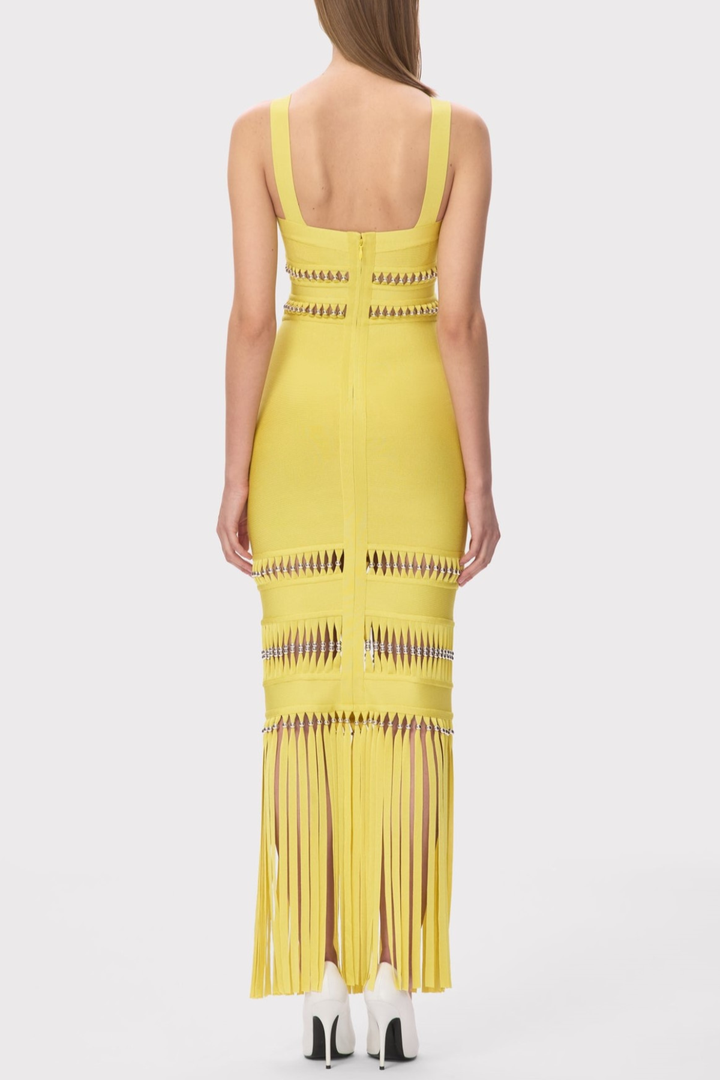 Efron Cutout Fringe Maxi Bandage Dress - Yellow