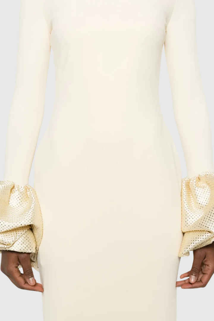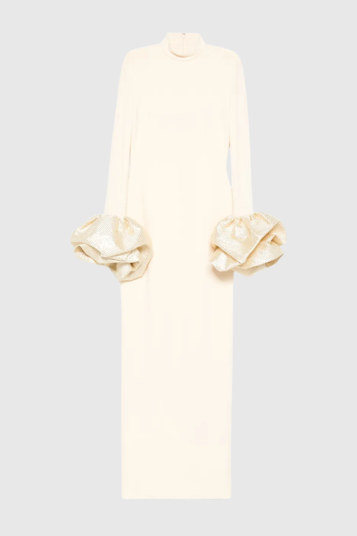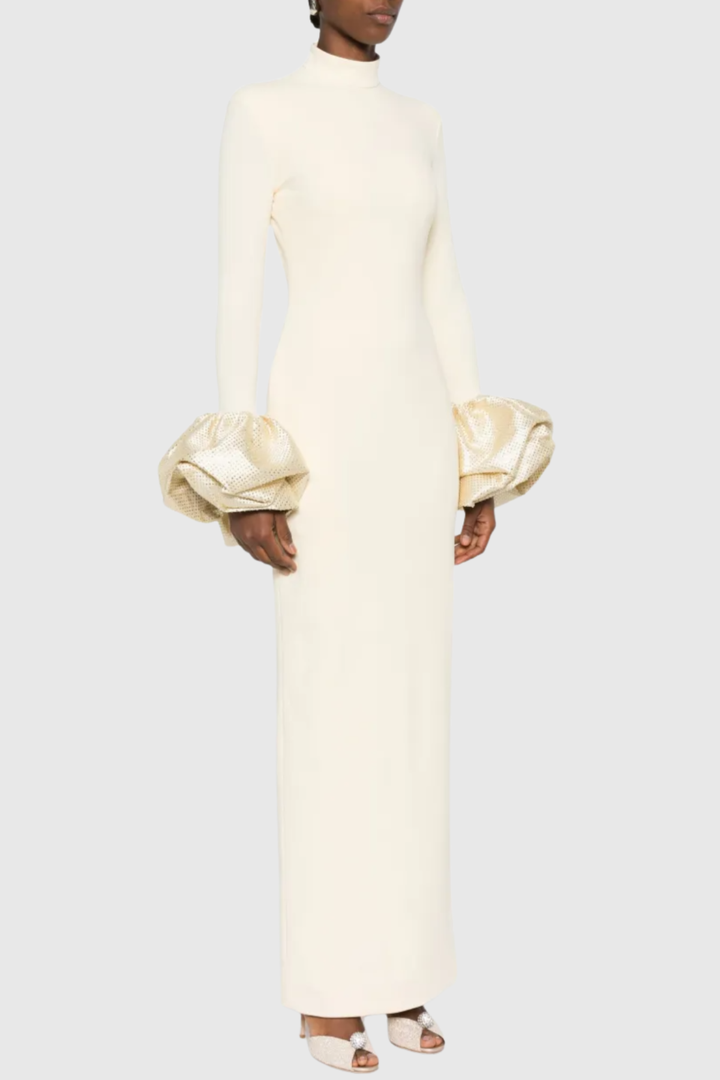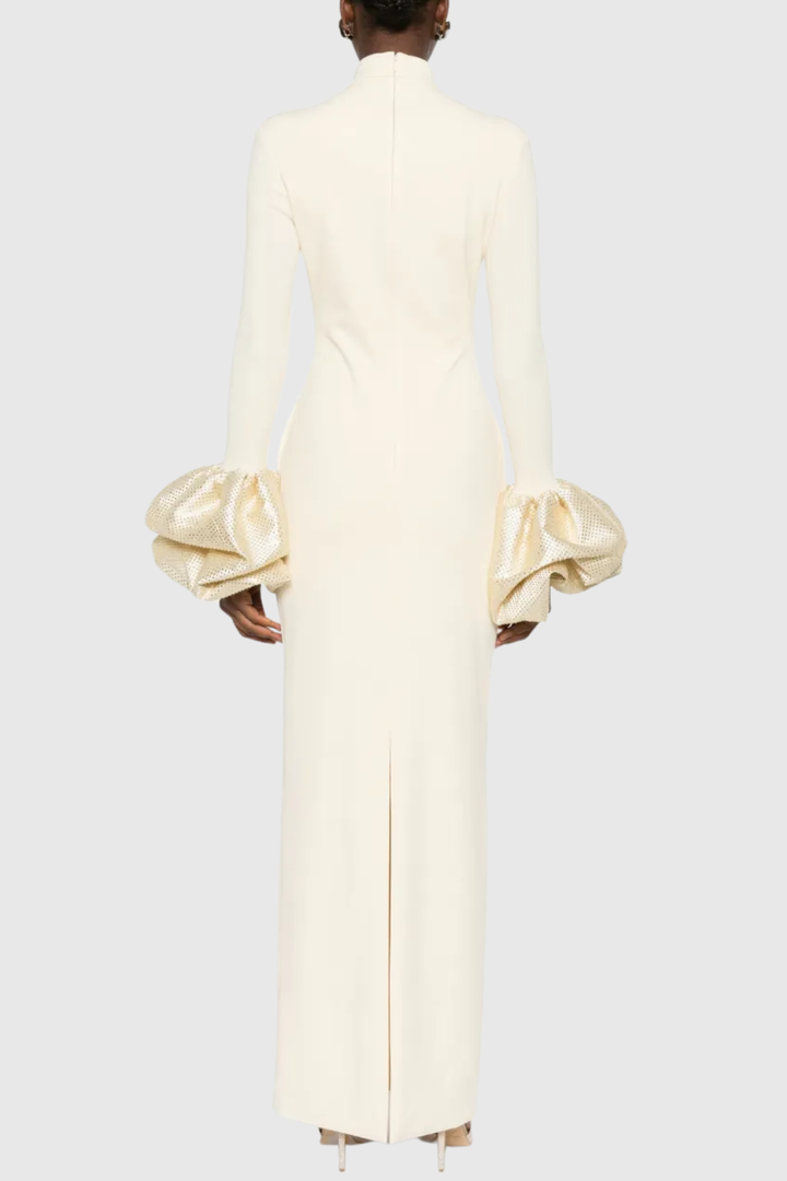 Ekatera Crystal Puff Sleeves Maxi Dress - Beige