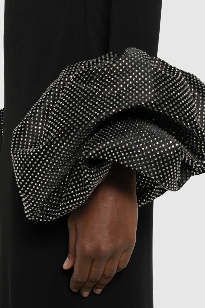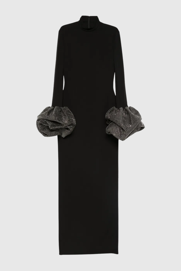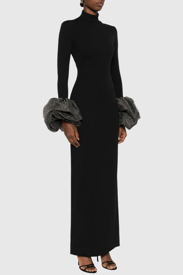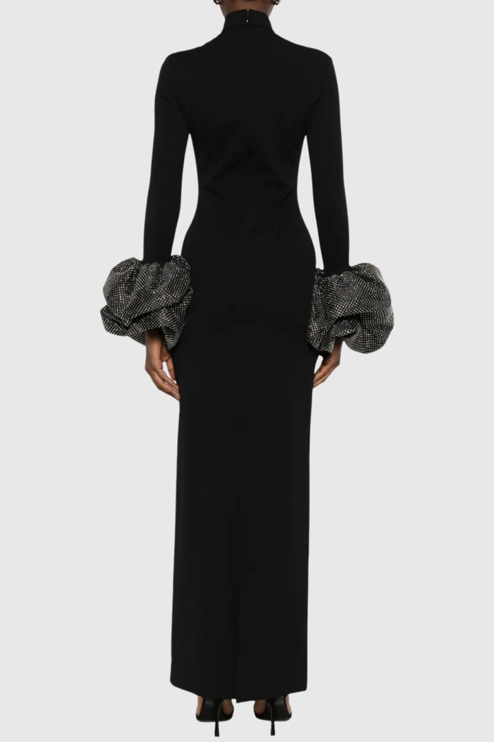 Ekatera Crystal Puff Sleeves Maxi Dress - Black