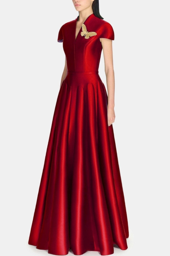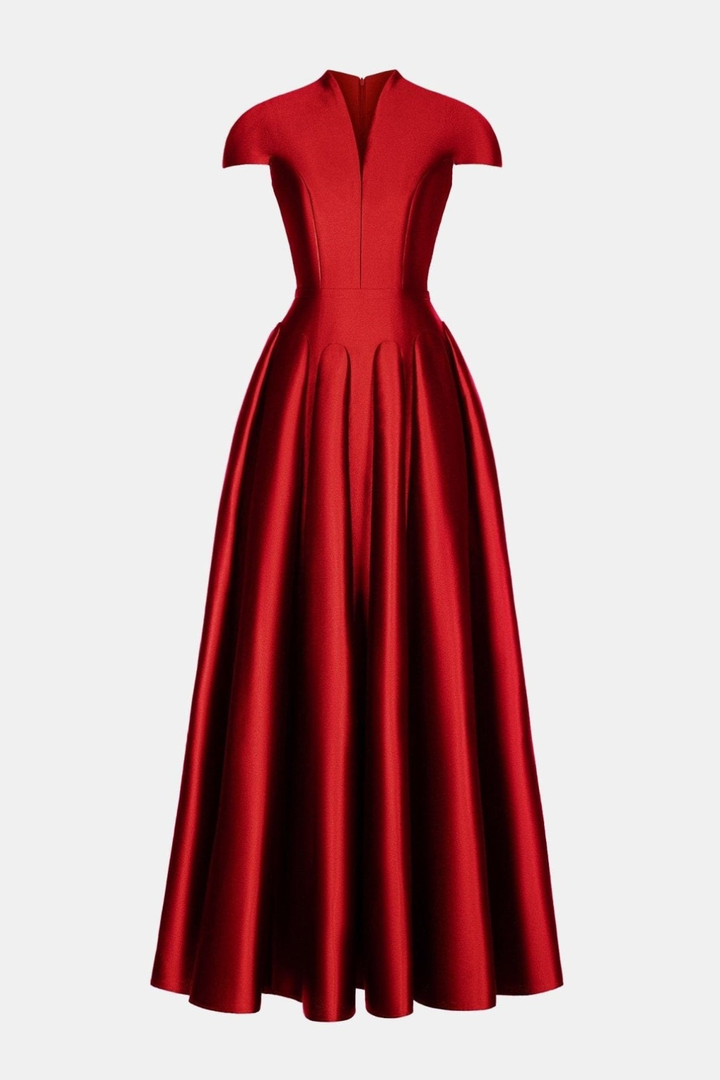 Elder Satin Flared Silhouette Maxi Dress - Red